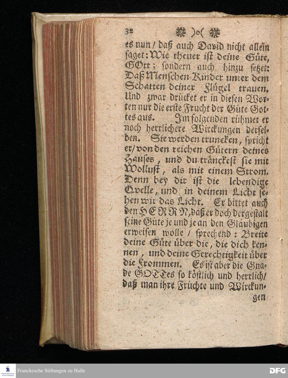Die Güte GOttes und die Sicherheit unter dem Schatten seiner Flügel / Bey dem ersten öffentlichen Gebrauch eines neu=erbaueten Saals im Waysen=Hause zu Glaucha an Halle / den 5.August. MDCCXI. aus schuldiger Danckbarkeit gegen GOtt und zur Erweckung und Stärckung des Vertrauens auf denselben lebendigen GOTT / vorgestellet Von August Hermann Francken / S.Theol.Prof.Ord.Past.Vlr.u.Sch. Andere Auflage. HALLE, In Verlegung des Wäysenhauses / 1716.