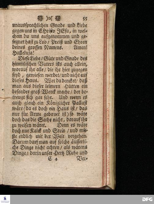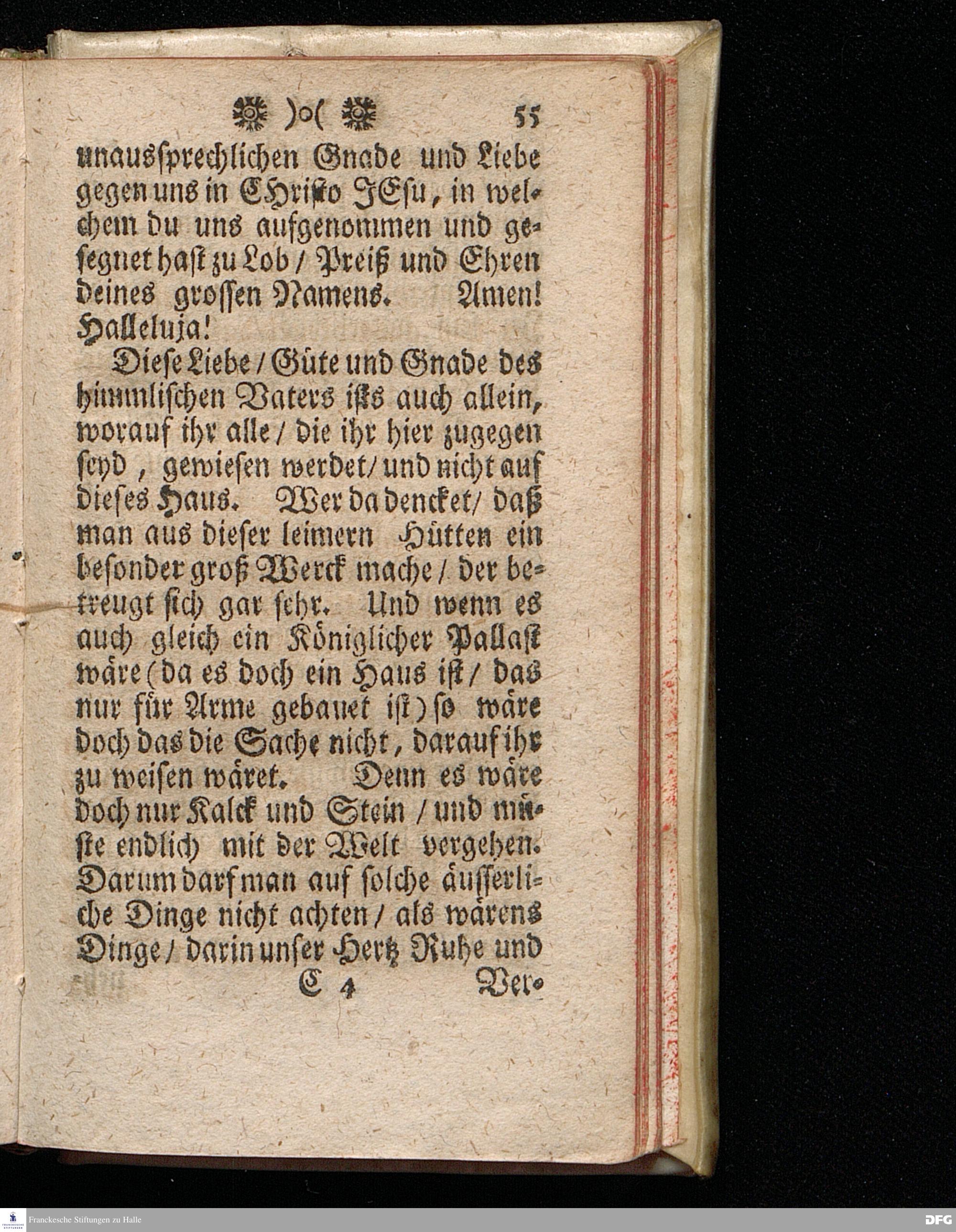 Die Güte GOttes und die Sicherheit unter dem Schatten seiner Flügel / Bey dem ersten öffentlichen Gebrauch eines neu=erbaueten Saals im Waysen=Hause zu Glaucha an Halle / den 5.August. MDCCXI. aus schuldiger Danckbarkeit gegen GOtt und zur Erweckung und Stärckung des Vertrauens auf denselben lebendigen GOTT / vorgestellet Von August Hermann Francken / S.Theol.Prof.Ord.Past.Vlr.u.Sch. Andere Auflage. HALLE, In Verlegung des Wäysenhauses / 1716.