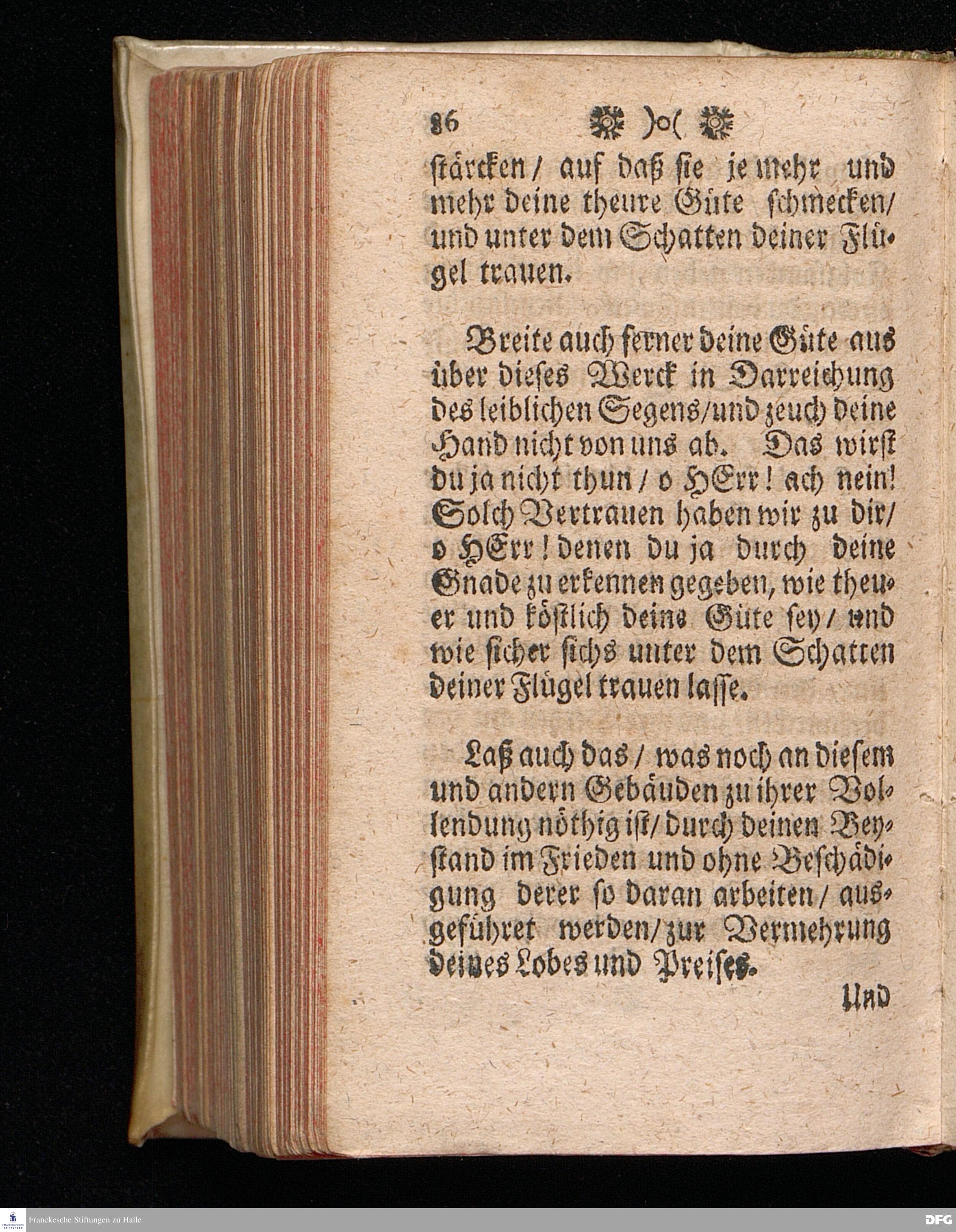 Die Güte GOttes und die Sicherheit unter dem Schatten seiner Flügel / Bey dem ersten öffentlichen Gebrauch eines neu=erbaueten Saals im Waysen=Hause zu Glaucha an Halle / den 5.August. MDCCXI. aus schuldiger Danckbarkeit gegen GOtt und zur Erweckung und Stärckung des Vertrauens auf denselben lebendigen GOTT / vorgestellet Von August Hermann Francken / S.Theol.Prof.Ord.Past.Vlr.u.Sch. Andere Auflage. HALLE, In Verlegung des Wäysenhauses / 1716.