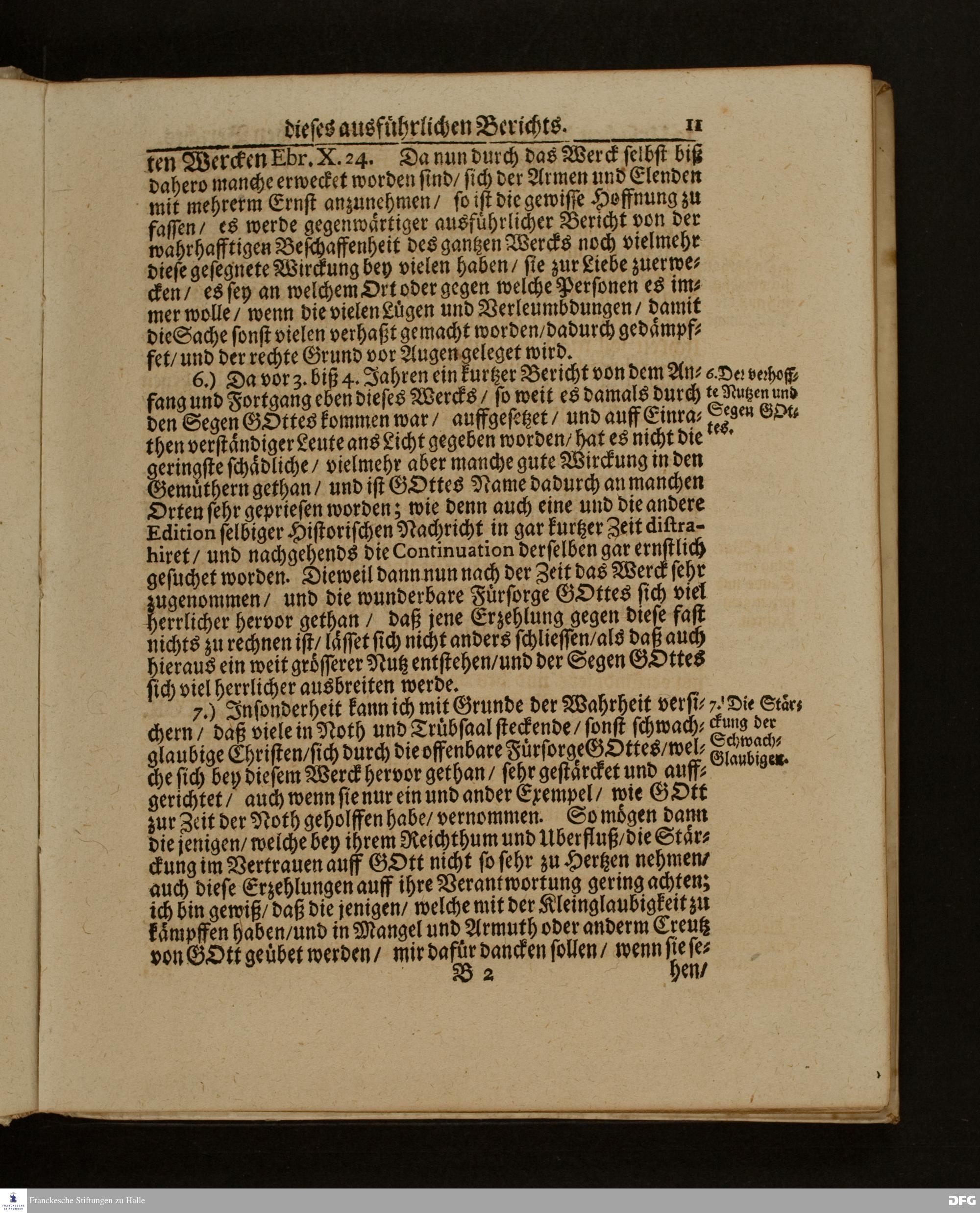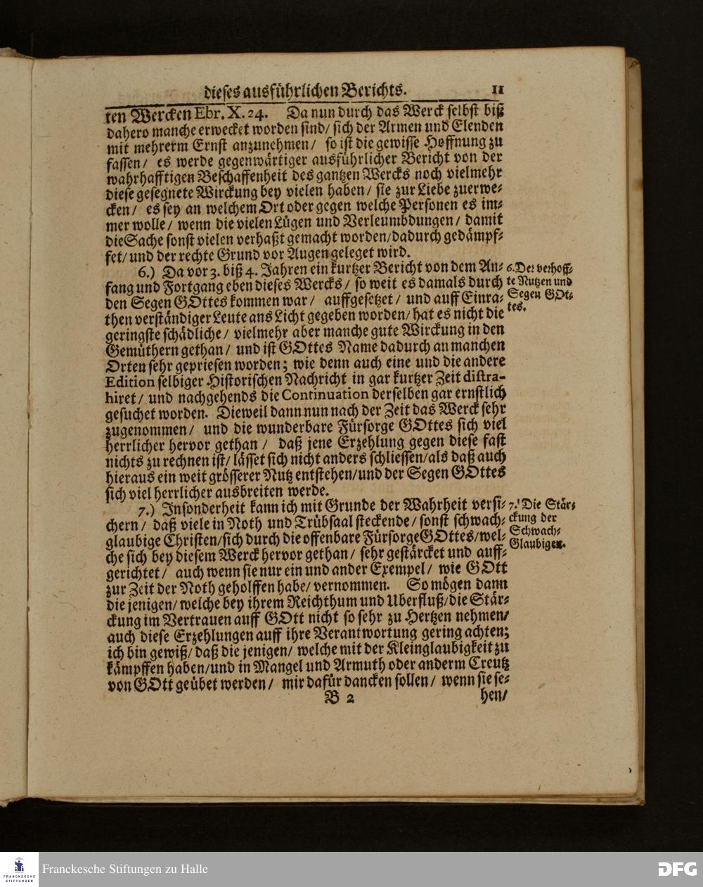 Die Fußstapffen Des noch lebenden und waltenden liebreichen und getreuen GOTTES / Zur Beschämung des Unglaubens / und Stärckung des Glaubens / Durch den Ausführlichen Bericht Vom Wäysen=Hause / Armen=Schulen / und übriger Armen=Verpflegung Zu Glaucha an Halle / Wie selbige fortgesetzet biß Ostern Anno 1701. Entdecket von August Hermann Francken / S.Th.Prof.Ord.und Past. [Spruch.] Mit Königl.Preußischen und Churfl.Brandenb.Privilegio. In Verlegung des Wäysen=Hauses zu Glaucha an Halle / 1701.