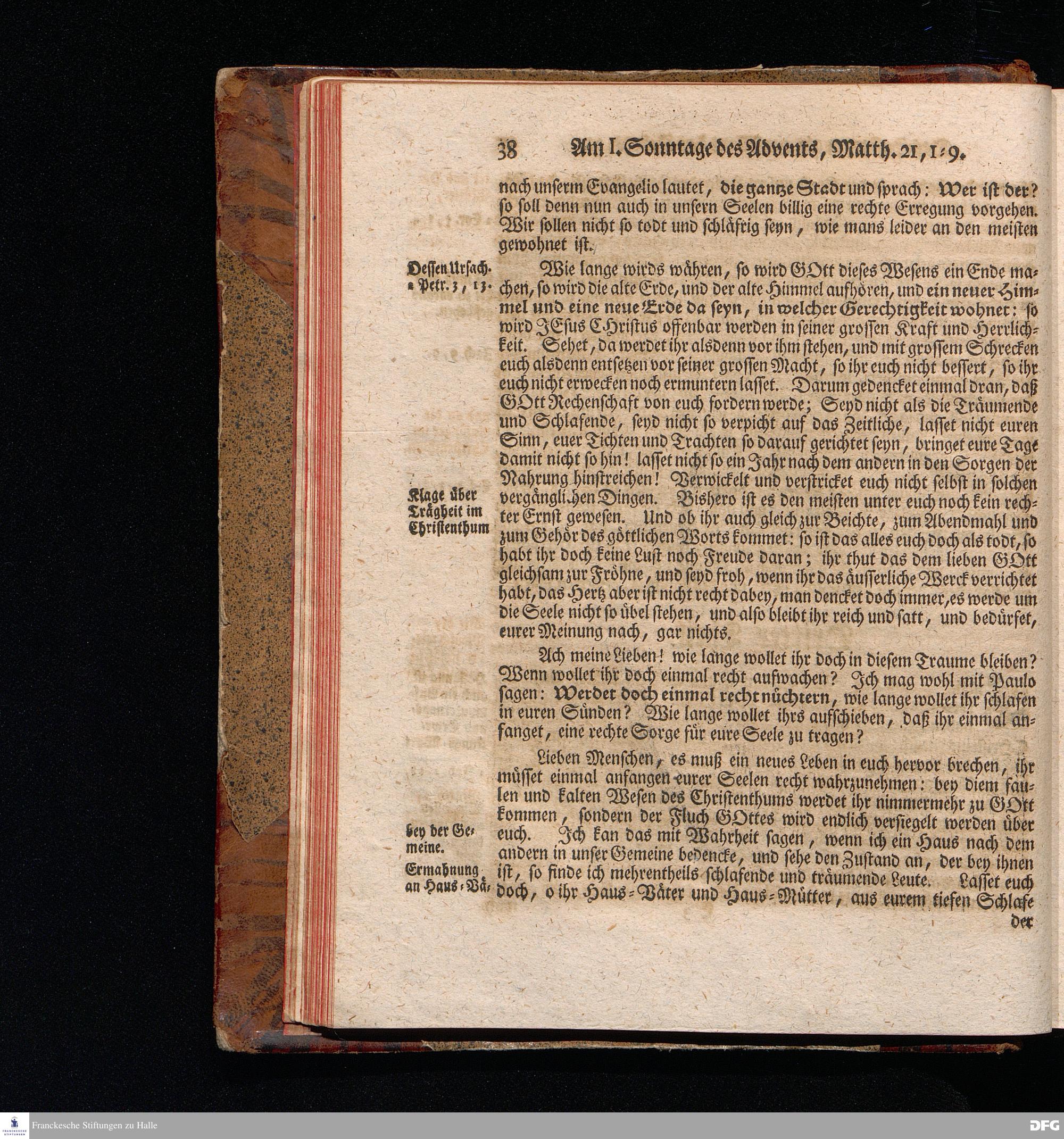 August Hermann Franckens, S.Theol.Prof.und Past. Sonn= Fest= und Apostel=Tags=Predigten, Darinnen Die zum wahren Christenthum gehörige nöthigste und vornehmste Materien abgehandelt sind; Nebst den darzu nützlichen Registern. Die achte EDITION. Mit Königl.Preuß.und Churfl.Brandenb.Privil. HALLE, gedruckt und verlegt im Wäysenhause / MDCCXLVI.