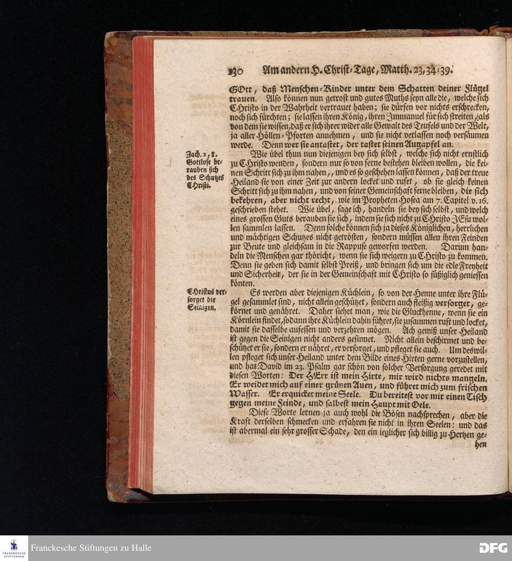 August Hermann Franckens, S.Theol.Prof.und Past. Sonn= Fest= und Apostel=Tags=Predigten, Darinnen Die zum wahren Christenthum gehörige nöthigste und vornehmste Materien abgehandelt sind; Nebst den darzu nützlichen Registern. Die achte EDITION. Mit Königl.Preuß.und Churfl.Brandenb.Privil. HALLE, gedruckt und verlegt im Wäysenhause / MDCCXLVI.