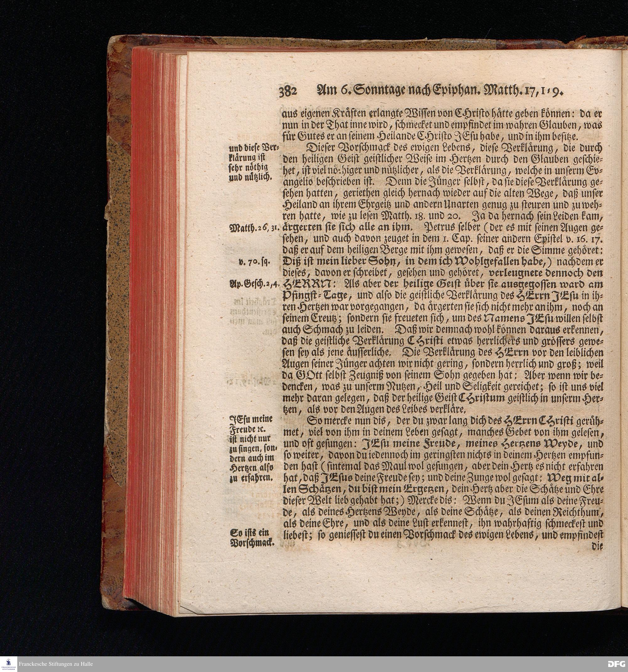 August Hermann Franckens, S.Theol.Prof.und Past. Sonn= Fest= und Apostel=Tags=Predigten, Darinnen Die zum wahren Christenthum gehörige nöthigste und vornehmste Materien abgehandelt sind; Nebst den darzu nützlichen Registern. Die achte EDITION. Mit Königl.Preuß.und Churfl.Brandenb.Privil. HALLE, gedruckt und verlegt im Wäysenhause / MDCCXLVI.