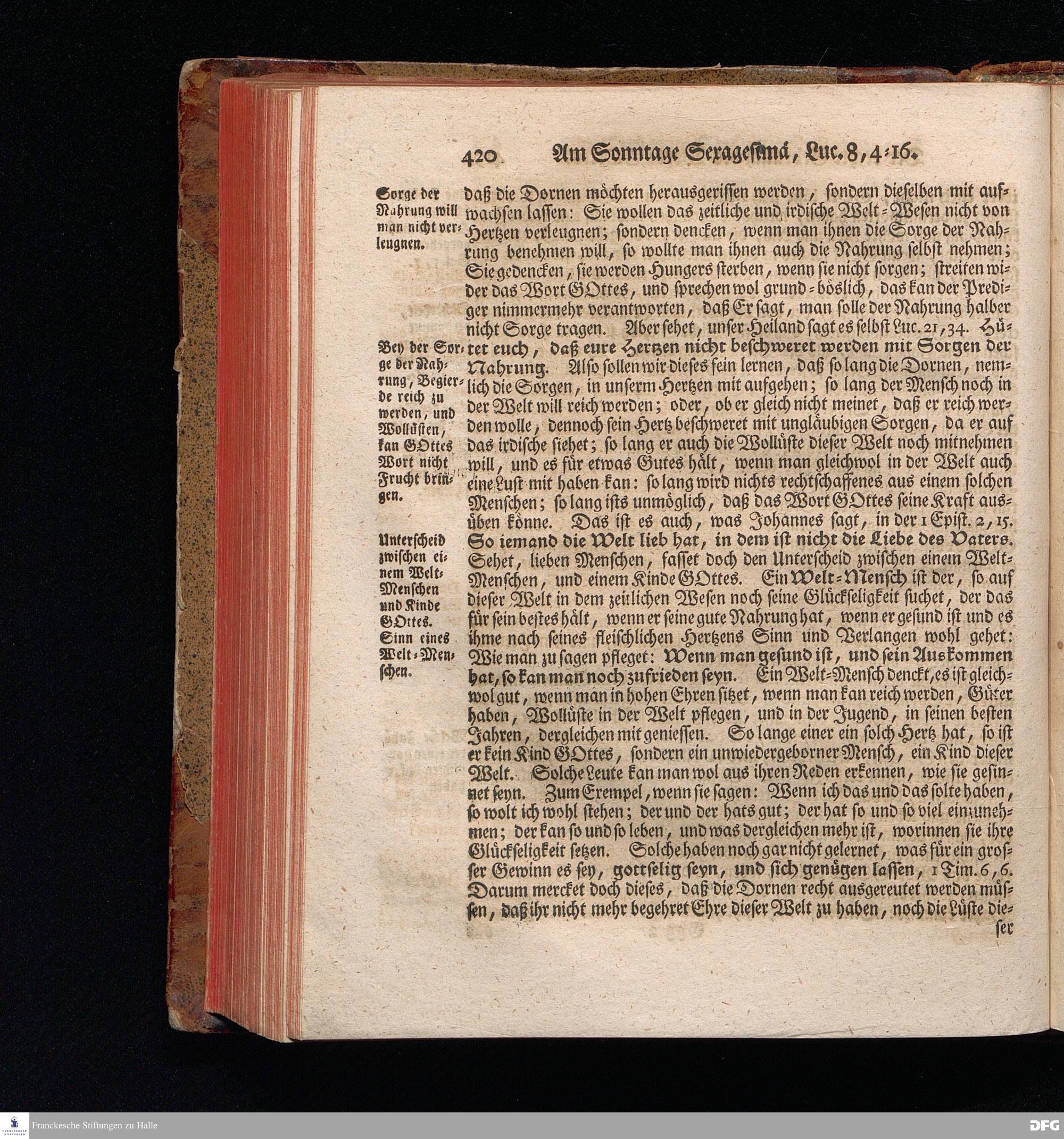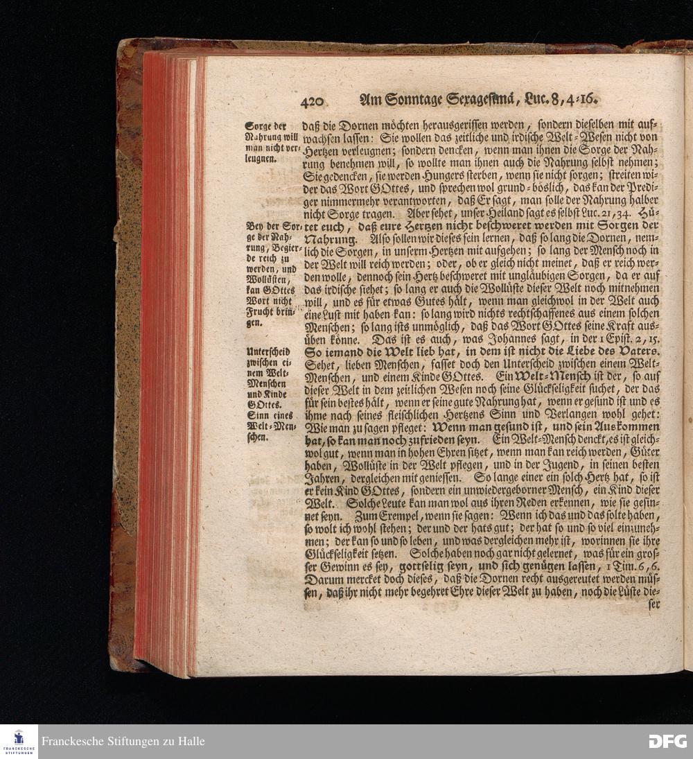 August Hermann Franckens, S.Theol.Prof.und Past. Sonn= Fest= und Apostel=Tags=Predigten, Darinnen Die zum wahren Christenthum gehörige nöthigste und vornehmste Materien abgehandelt sind; Nebst den darzu nützlichen Registern. Die achte EDITION. Mit Königl.Preuß.und Churfl.Brandenb.Privil. HALLE, gedruckt und verlegt im Wäysenhause / MDCCXLVI.