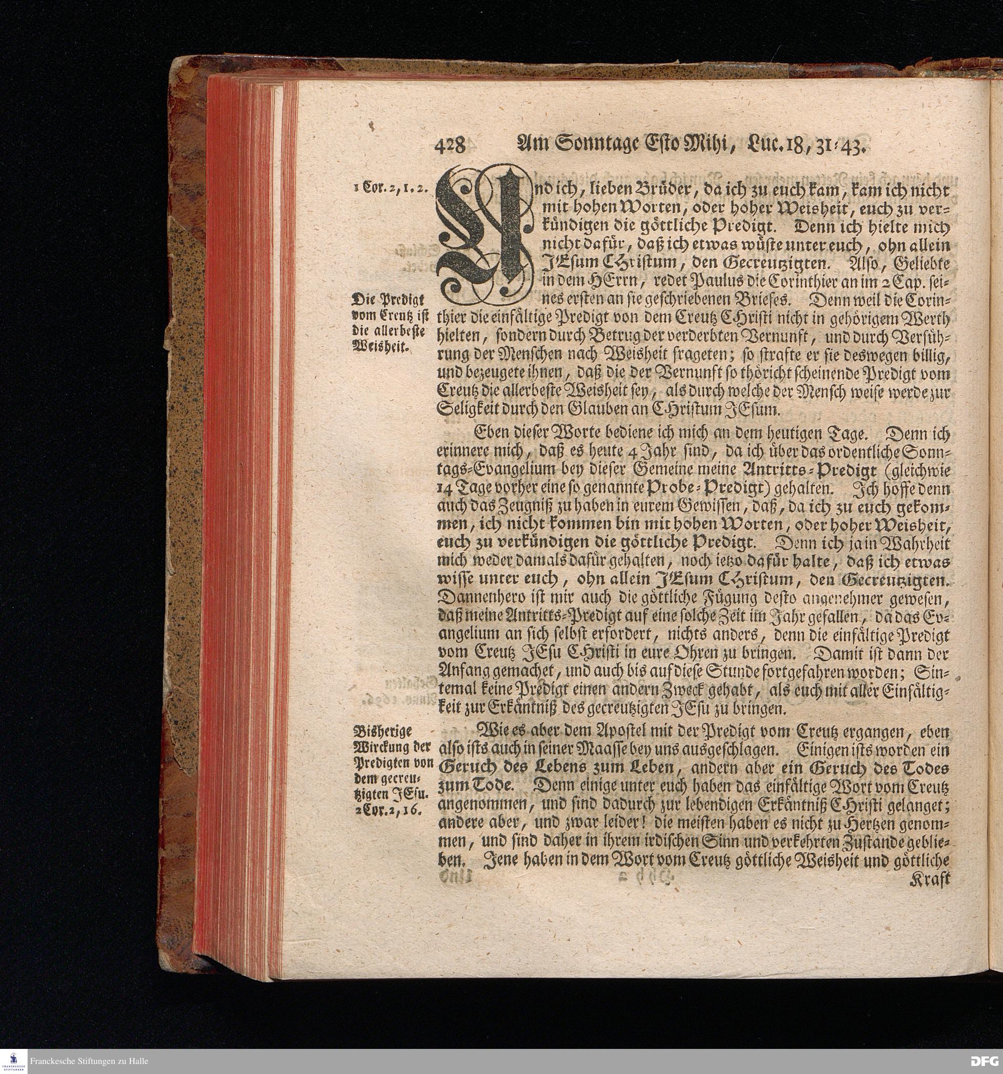 August Hermann Franckens, S.Theol.Prof.und Past. Sonn= Fest= und Apostel=Tags=Predigten, Darinnen Die zum wahren Christenthum gehörige nöthigste und vornehmste Materien abgehandelt sind; Nebst den darzu nützlichen Registern. Die achte EDITION. Mit Königl.Preuß.und Churfl.Brandenb.Privil. HALLE, gedruckt und verlegt im Wäysenhause / MDCCXLVI.