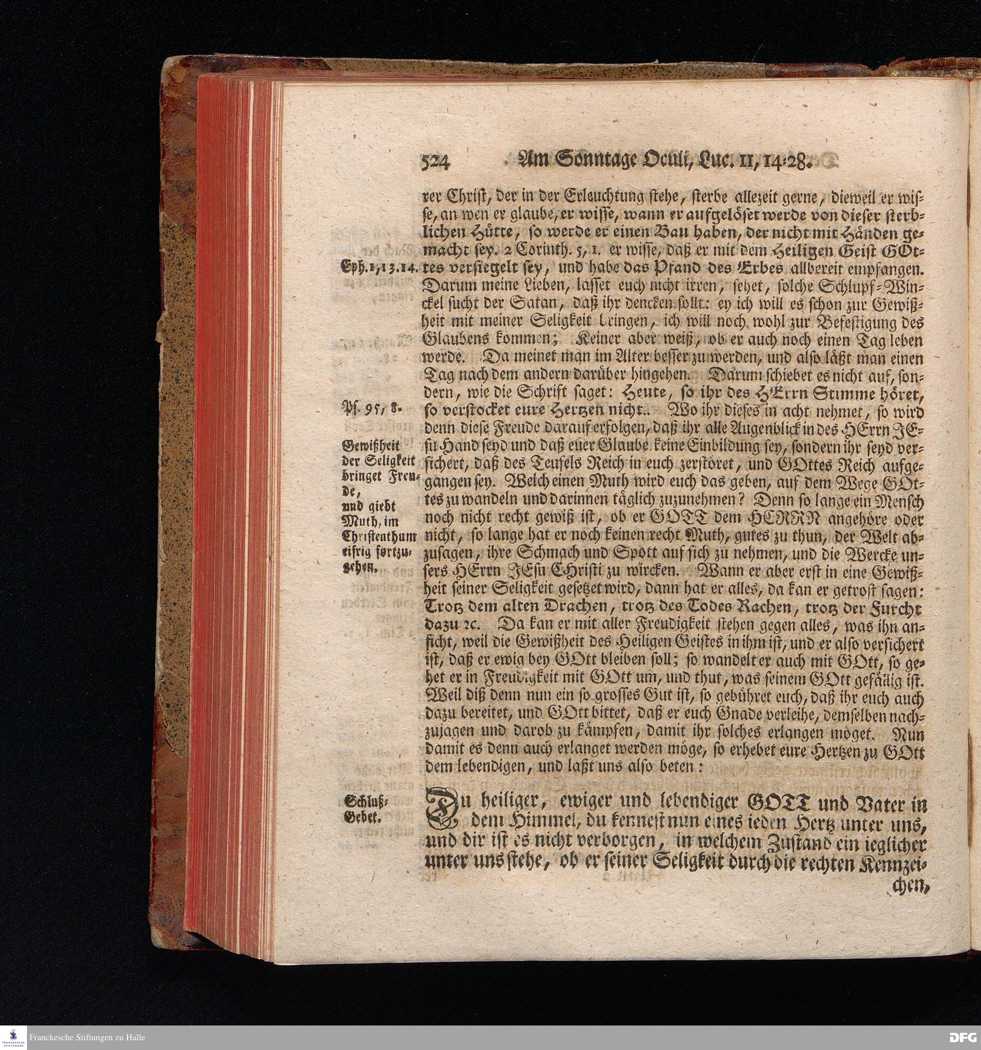 August Hermann Franckens, S.Theol.Prof.und Past. Sonn= Fest= und Apostel=Tags=Predigten, Darinnen Die zum wahren Christenthum gehörige nöthigste und vornehmste Materien abgehandelt sind; Nebst den darzu nützlichen Registern. Die achte EDITION. Mit Königl.Preuß.und Churfl.Brandenb.Privil. HALLE, gedruckt und verlegt im Wäysenhause / MDCCXLVI.