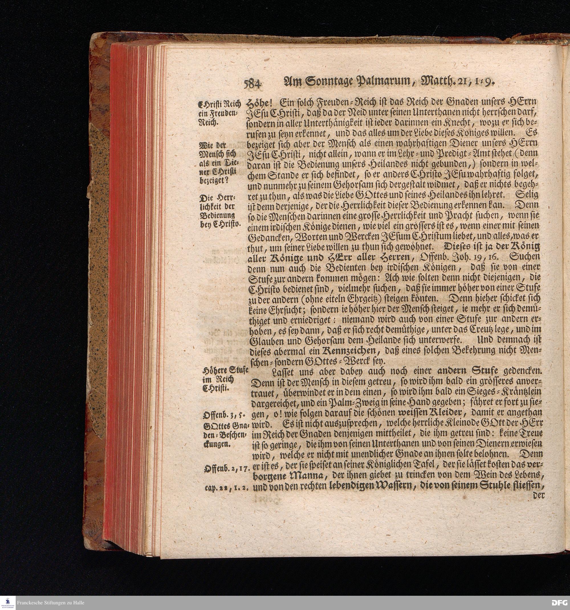 August Hermann Franckens, S.Theol.Prof.und Past. Sonn= Fest= und Apostel=Tags=Predigten, Darinnen Die zum wahren Christenthum gehörige nöthigste und vornehmste Materien abgehandelt sind; Nebst den darzu nützlichen Registern. Die achte EDITION. Mit Königl.Preuß.und Churfl.Brandenb.Privil. HALLE, gedruckt und verlegt im Wäysenhause / MDCCXLVI.