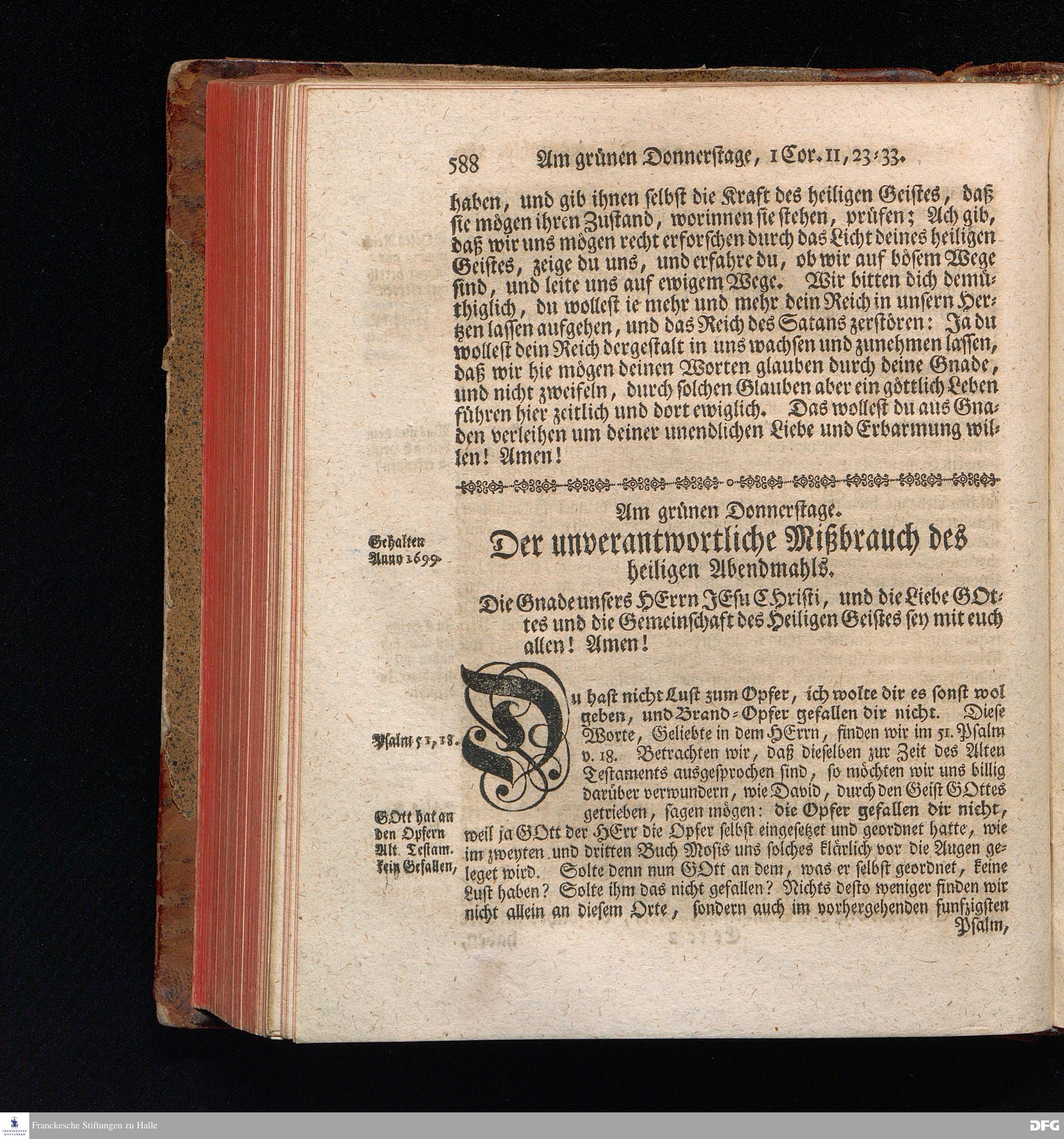 August Hermann Franckens, S.Theol.Prof.und Past. Sonn= Fest= und Apostel=Tags=Predigten, Darinnen Die zum wahren Christenthum gehörige nöthigste und vornehmste Materien abgehandelt sind; Nebst den darzu nützlichen Registern. Die achte EDITION. Mit Königl.Preuß.und Churfl.Brandenb.Privil. HALLE, gedruckt und verlegt im Wäysenhause / MDCCXLVI.