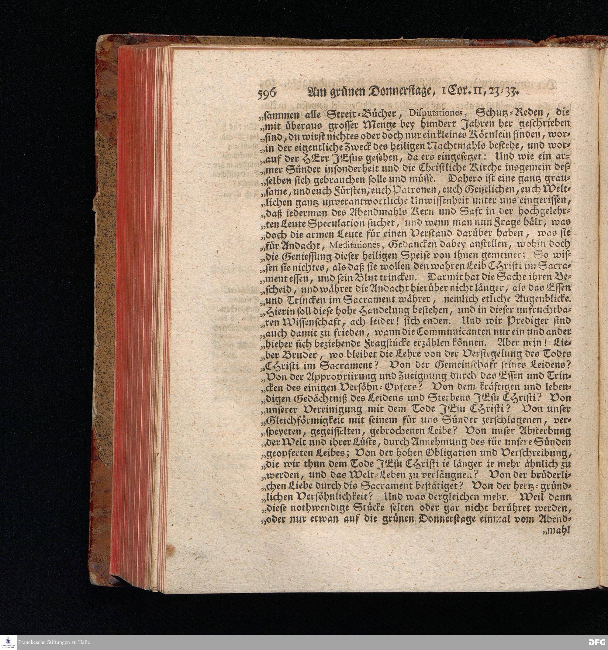 August Hermann Franckens, S.Theol.Prof.und Past. Sonn= Fest= und Apostel=Tags=Predigten, Darinnen Die zum wahren Christenthum gehörige nöthigste und vornehmste Materien abgehandelt sind; Nebst den darzu nützlichen Registern. Die achte EDITION. Mit Königl.Preuß.und Churfl.Brandenb.Privil. HALLE, gedruckt und verlegt im Wäysenhause / MDCCXLVI.