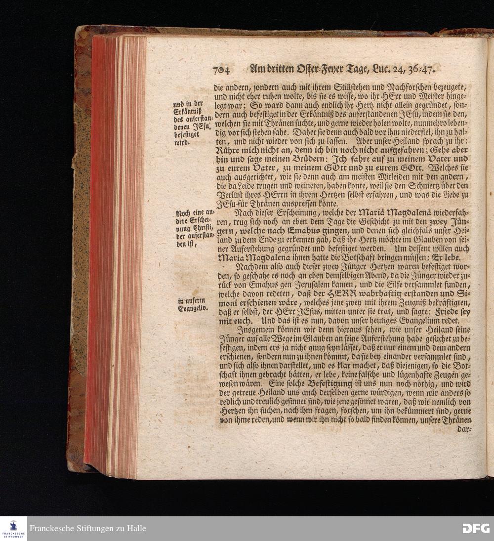 August Hermann Franckens, S.Theol.Prof.und Past. Sonn= Fest= und Apostel=Tags=Predigten, Darinnen Die zum wahren Christenthum gehörige nöthigste und vornehmste Materien abgehandelt sind; Nebst den darzu nützlichen Registern. Die achte EDITION. Mit Königl.Preuß.und Churfl.Brandenb.Privil. HALLE, gedruckt und verlegt im Wäysenhause / MDCCXLVI.