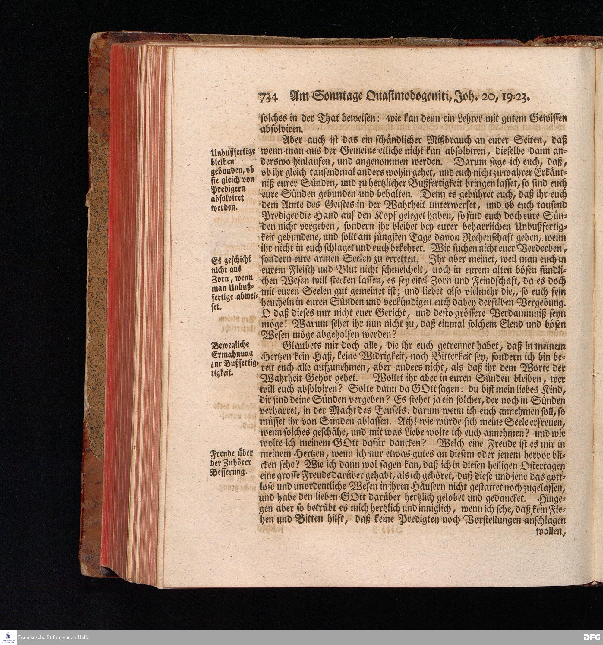 August Hermann Franckens, S.Theol.Prof.und Past. Sonn= Fest= und Apostel=Tags=Predigten, Darinnen Die zum wahren Christenthum gehörige nöthigste und vornehmste Materien abgehandelt sind; Nebst den darzu nützlichen Registern. Die achte EDITION. Mit Königl.Preuß.und Churfl.Brandenb.Privil. HALLE, gedruckt und verlegt im Wäysenhause / MDCCXLVI.