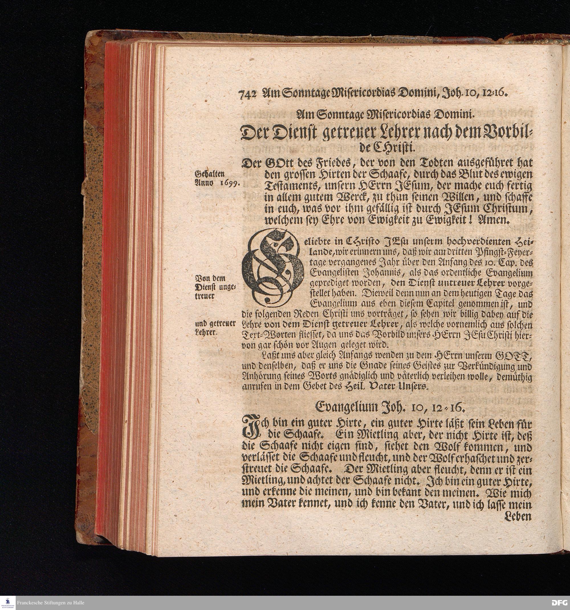 August Hermann Franckens, S.Theol.Prof.und Past. Sonn= Fest= und Apostel=Tags=Predigten, Darinnen Die zum wahren Christenthum gehörige nöthigste und vornehmste Materien abgehandelt sind; Nebst den darzu nützlichen Registern. Die achte EDITION. Mit Königl.Preuß.und Churfl.Brandenb.Privil. HALLE, gedruckt und verlegt im Wäysenhause / MDCCXLVI.