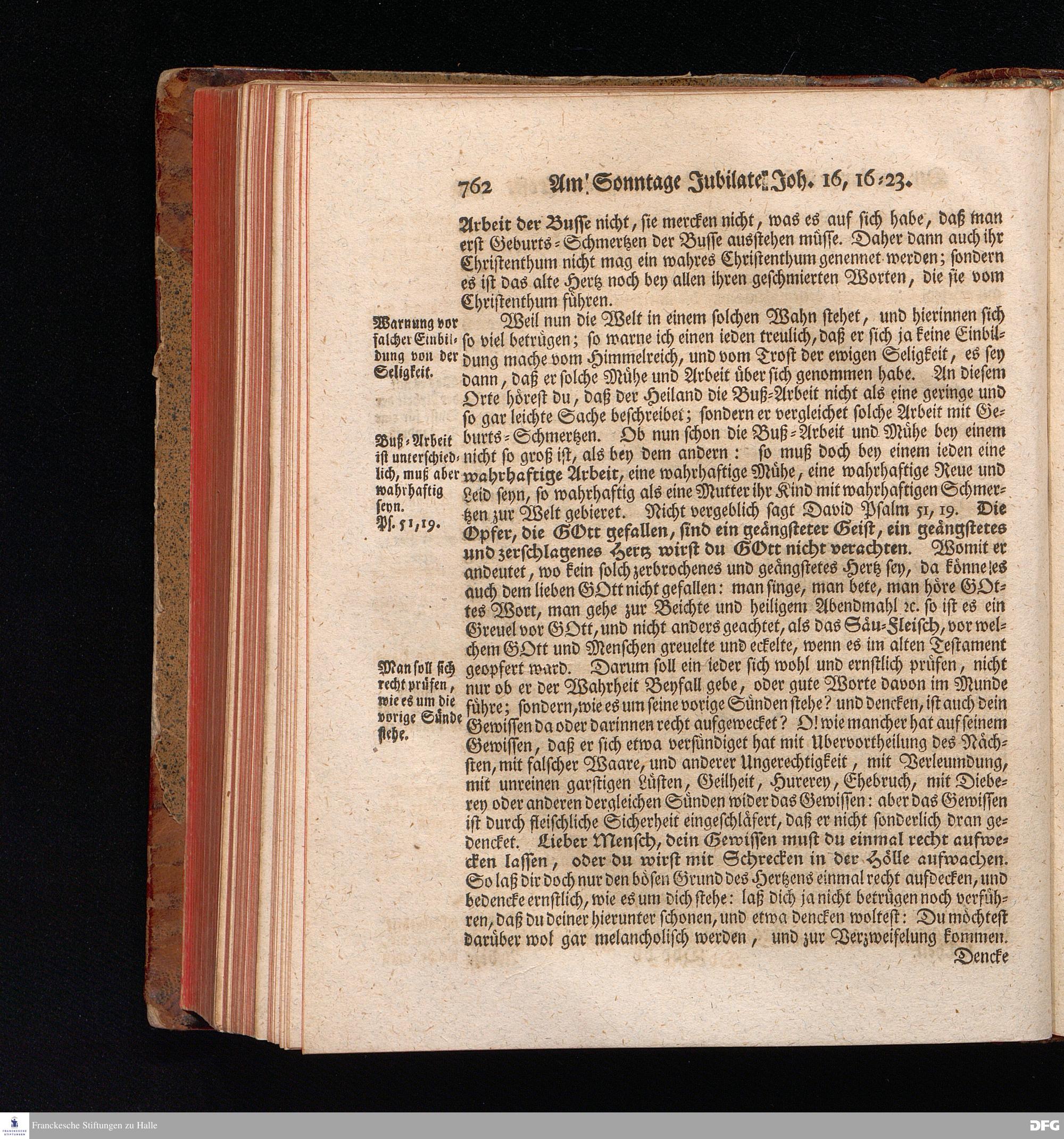 August Hermann Franckens, S.Theol.Prof.und Past. Sonn= Fest= und Apostel=Tags=Predigten, Darinnen Die zum wahren Christenthum gehörige nöthigste und vornehmste Materien abgehandelt sind; Nebst den darzu nützlichen Registern. Die achte EDITION. Mit Königl.Preuß.und Churfl.Brandenb.Privil. HALLE, gedruckt und verlegt im Wäysenhause / MDCCXLVI.