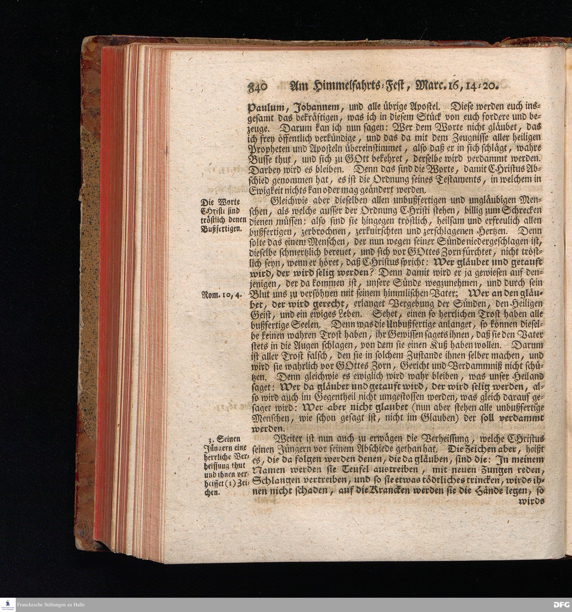 August Hermann Franckens, S.Theol.Prof.und Past. Sonn= Fest= und Apostel=Tags=Predigten, Darinnen Die zum wahren Christenthum gehörige nöthigste und vornehmste Materien abgehandelt sind; Nebst den darzu nützlichen Registern. Die achte EDITION. Mit Königl.Preuß.und Churfl.Brandenb.Privil. HALLE, gedruckt und verlegt im Wäysenhause / MDCCXLVI.