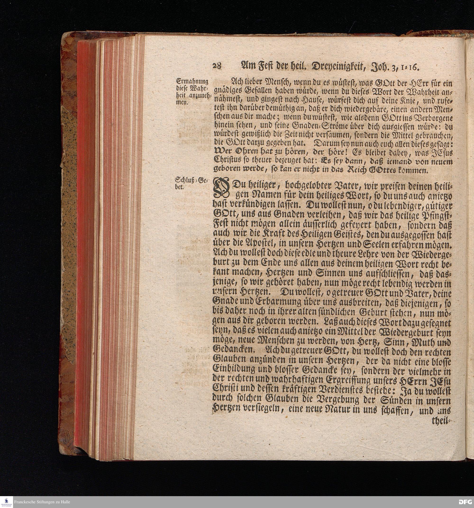 August Hermann Franckens, S.Theol.Prof.und Past. Sonn= Fest= und Apostel=Tags=Predigten, Darinnen Die zum wahren Christenthum gehörige nöthigste und vornehmste Materien abgehandelt sind; Nebst den darzu nützlichen Registern. Die achte EDITION. Mit Königl.Preuß.und Churfl.Brandenb.Privil. HALLE, gedruckt und verlegt im Wäysenhause / MDCCXLVI.