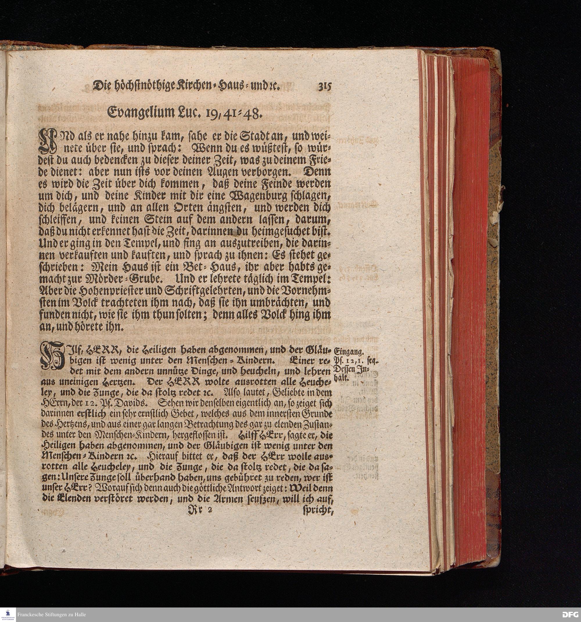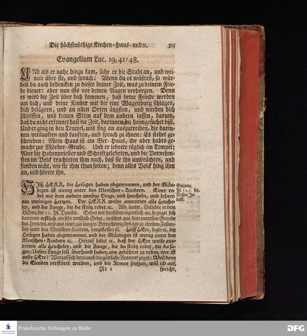 August Hermann Franckens, S.Theol.Prof.und Past. Sonn= Fest= und Apostel=Tags=Predigten, Darinnen Die zum wahren Christenthum gehörige nöthigste und vornehmste Materien abgehandelt sind; Nebst den darzu nützlichen Registern. Die achte EDITION. Mit Königl.Preuß.und Churfl.Brandenb.Privil. HALLE, gedruckt und verlegt im Wäysenhause / MDCCXLVI.