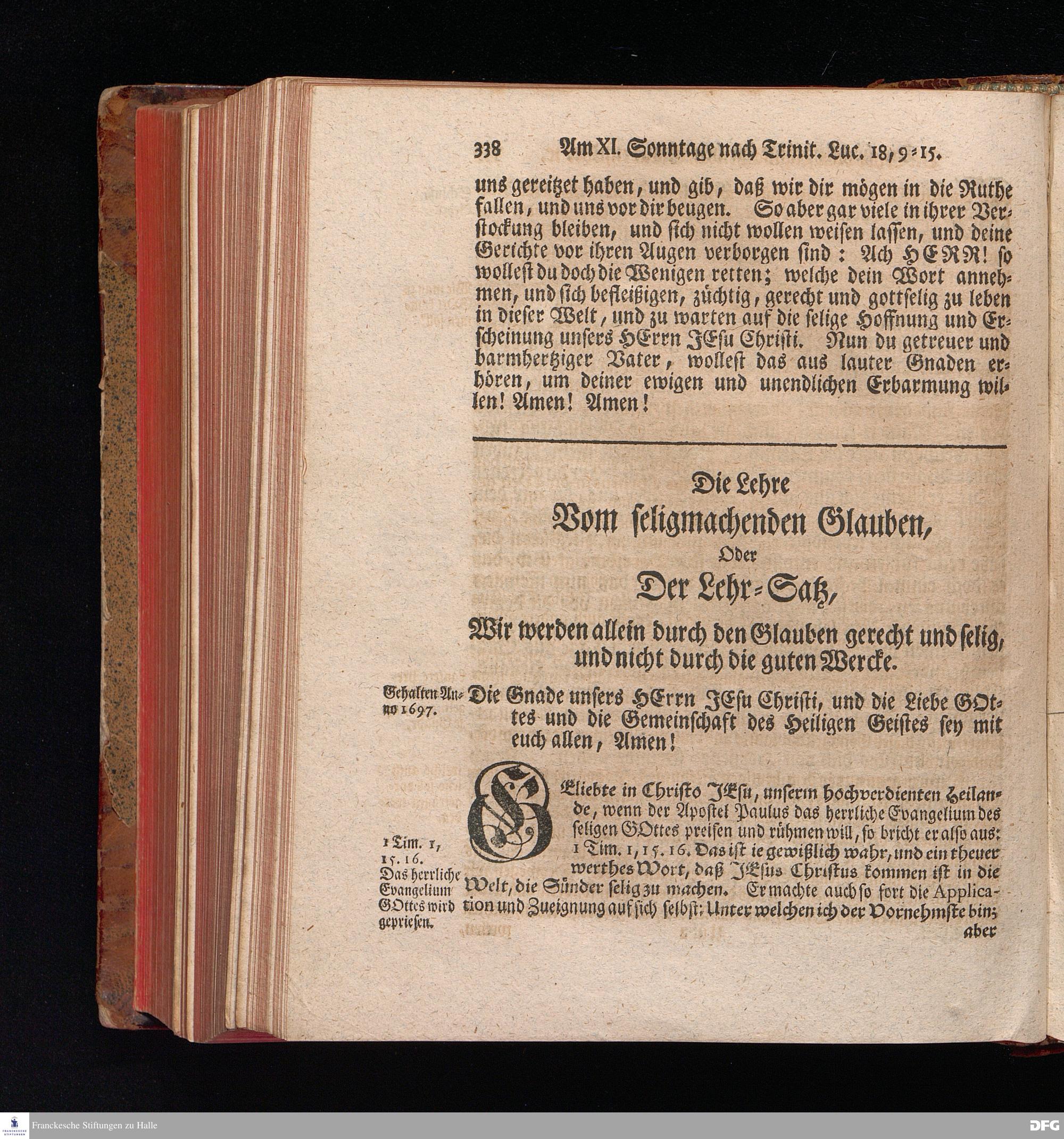 August Hermann Franckens, S.Theol.Prof.und Past. Sonn= Fest= und Apostel=Tags=Predigten, Darinnen Die zum wahren Christenthum gehörige nöthigste und vornehmste Materien abgehandelt sind; Nebst den darzu nützlichen Registern. Die achte EDITION. Mit Königl.Preuß.und Churfl.Brandenb.Privil. HALLE, gedruckt und verlegt im Wäysenhause / MDCCXLVI.