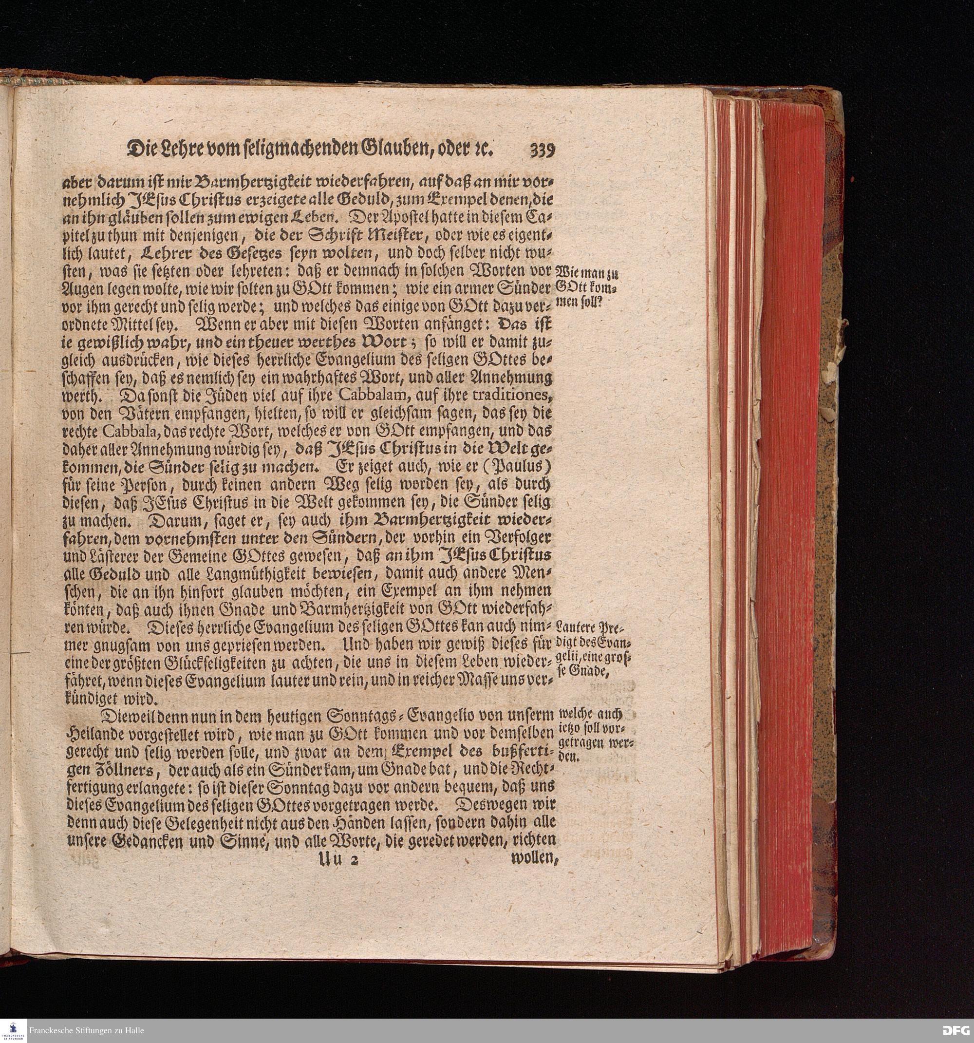 August Hermann Franckens, S.Theol.Prof.und Past. Sonn= Fest= und Apostel=Tags=Predigten, Darinnen Die zum wahren Christenthum gehörige nöthigste und vornehmste Materien abgehandelt sind; Nebst den darzu nützlichen Registern. Die achte EDITION. Mit Königl.Preuß.und Churfl.Brandenb.Privil. HALLE, gedruckt und verlegt im Wäysenhause / MDCCXLVI.