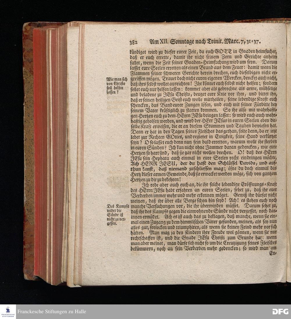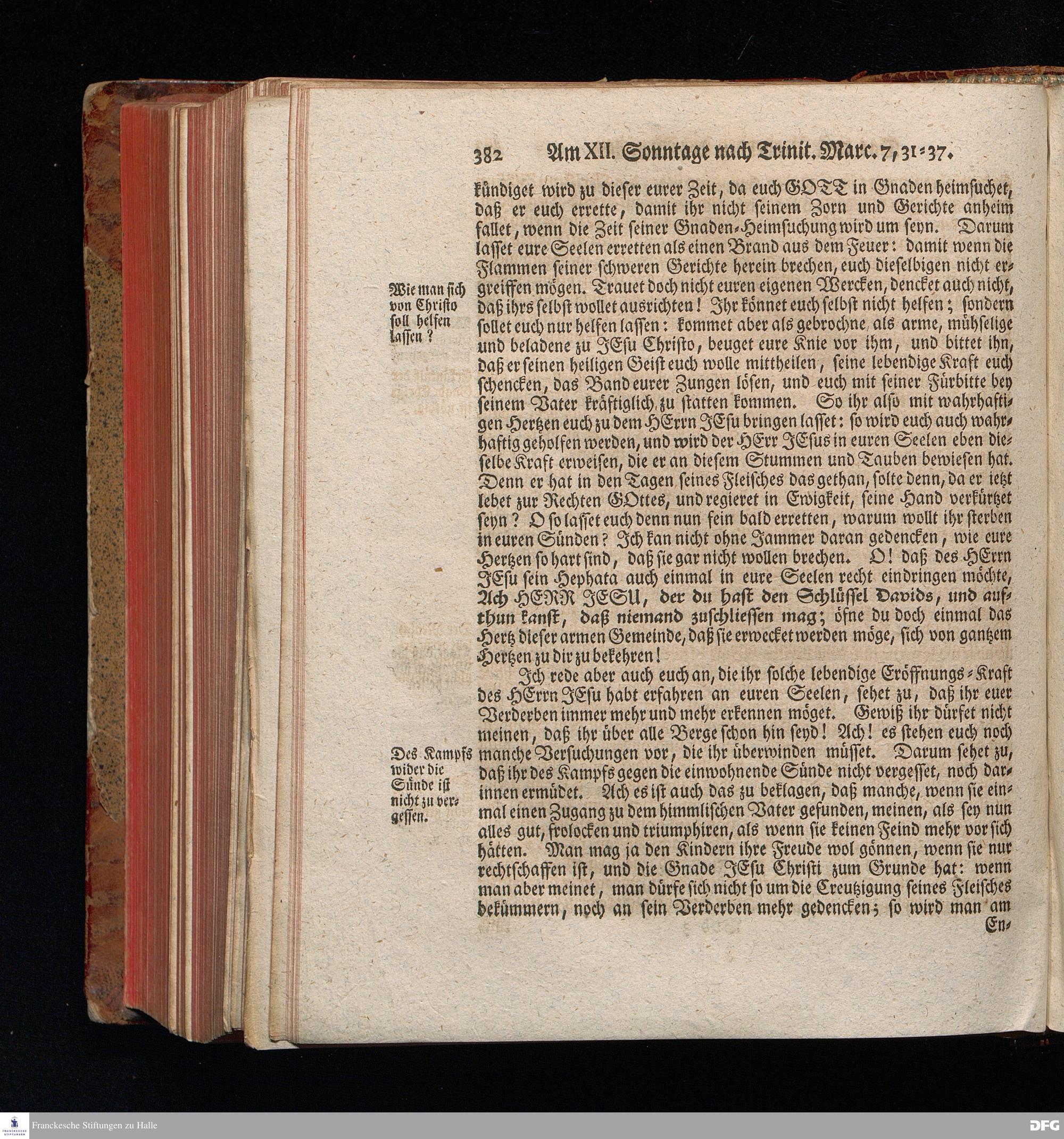 August Hermann Franckens, S.Theol.Prof.und Past. Sonn= Fest= und Apostel=Tags=Predigten, Darinnen Die zum wahren Christenthum gehörige nöthigste und vornehmste Materien abgehandelt sind; Nebst den darzu nützlichen Registern. Die achte EDITION. Mit Königl.Preuß.und Churfl.Brandenb.Privil. HALLE, gedruckt und verlegt im Wäysenhause / MDCCXLVI.