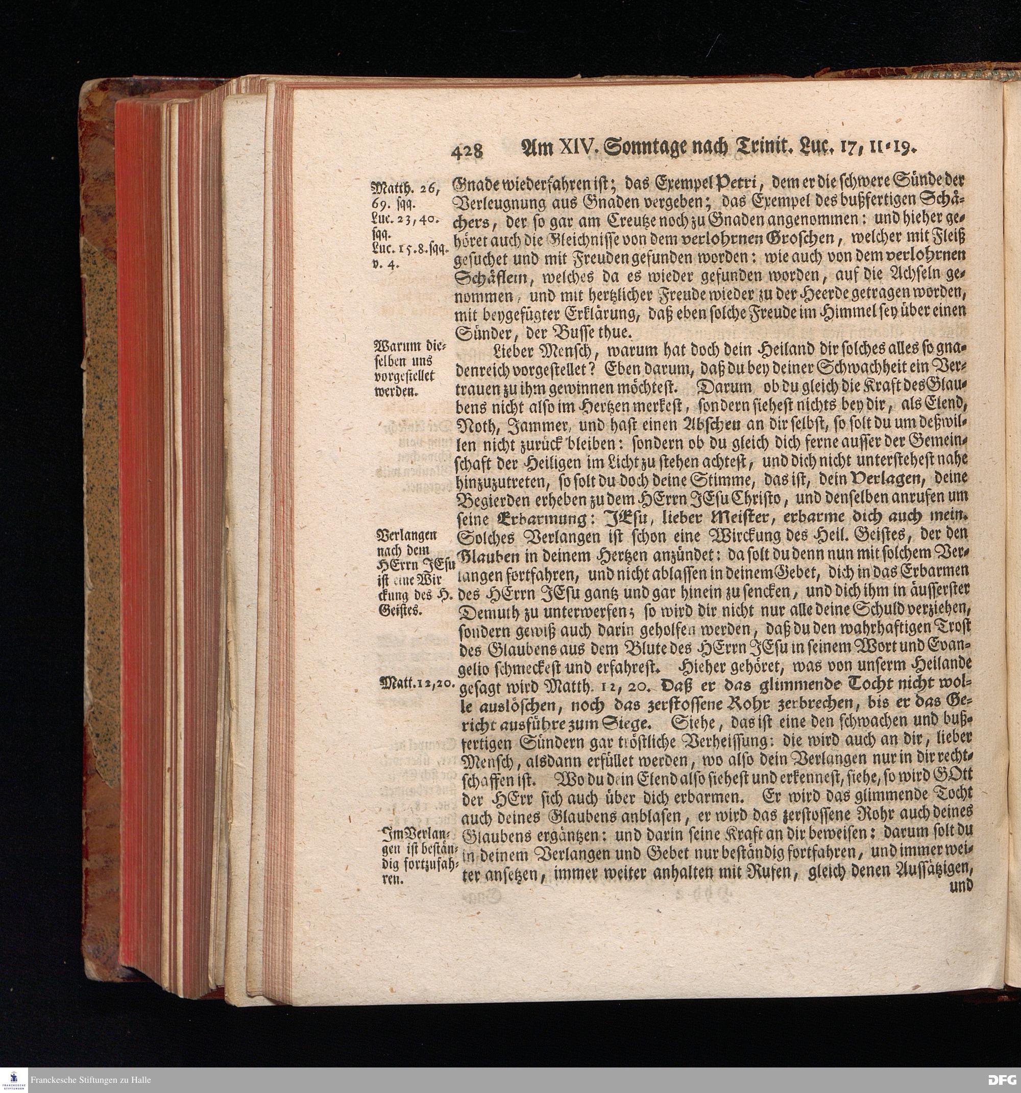 August Hermann Franckens, S.Theol.Prof.und Past. Sonn= Fest= und Apostel=Tags=Predigten, Darinnen Die zum wahren Christenthum gehörige nöthigste und vornehmste Materien abgehandelt sind; Nebst den darzu nützlichen Registern. Die achte EDITION. Mit Königl.Preuß.und Churfl.Brandenb.Privil. HALLE, gedruckt und verlegt im Wäysenhause / MDCCXLVI.