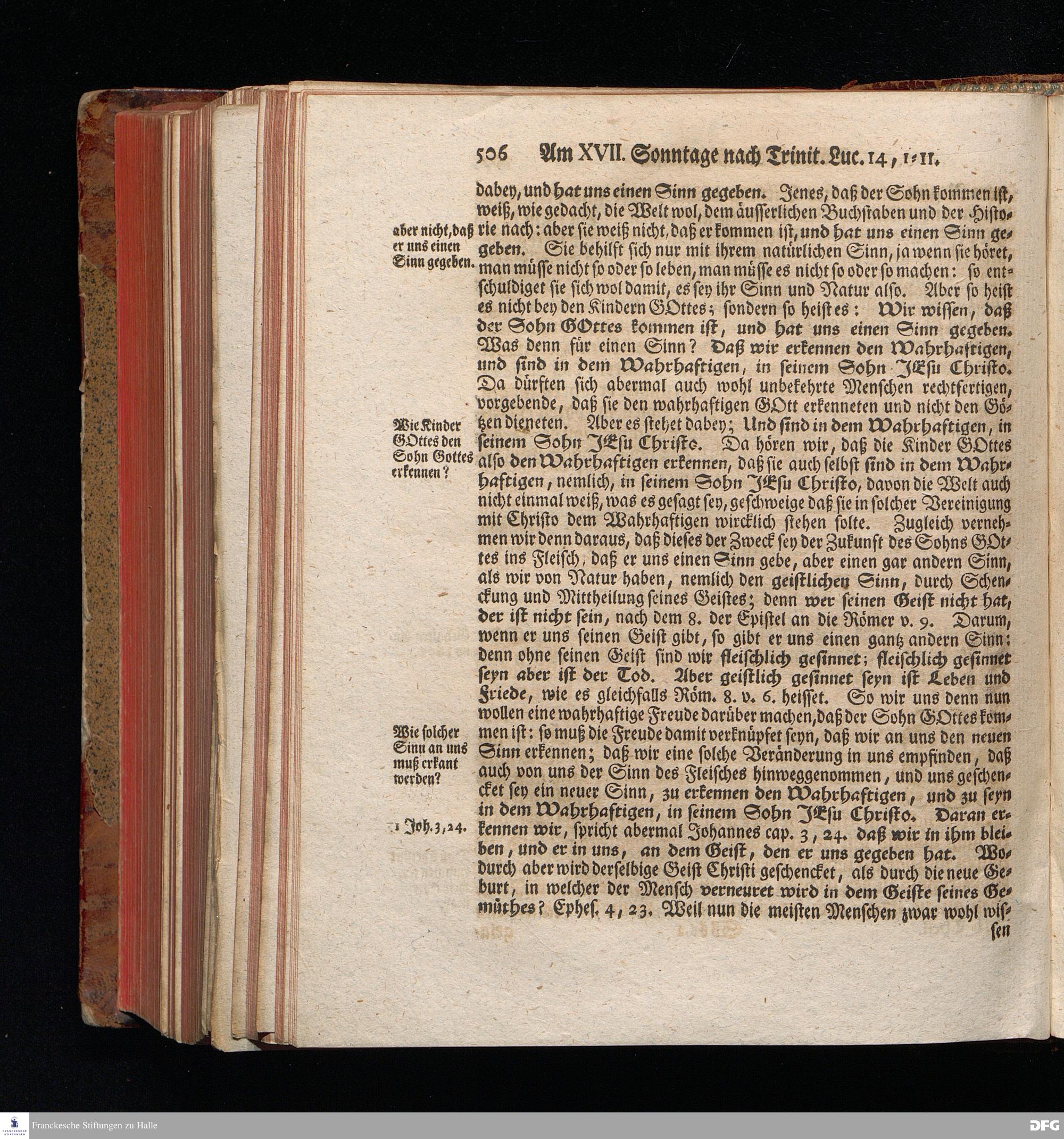 August Hermann Franckens, S.Theol.Prof.und Past. Sonn= Fest= und Apostel=Tags=Predigten, Darinnen Die zum wahren Christenthum gehörige nöthigste und vornehmste Materien abgehandelt sind; Nebst den darzu nützlichen Registern. Die achte EDITION. Mit Königl.Preuß.und Churfl.Brandenb.Privil. HALLE, gedruckt und verlegt im Wäysenhause / MDCCXLVI.