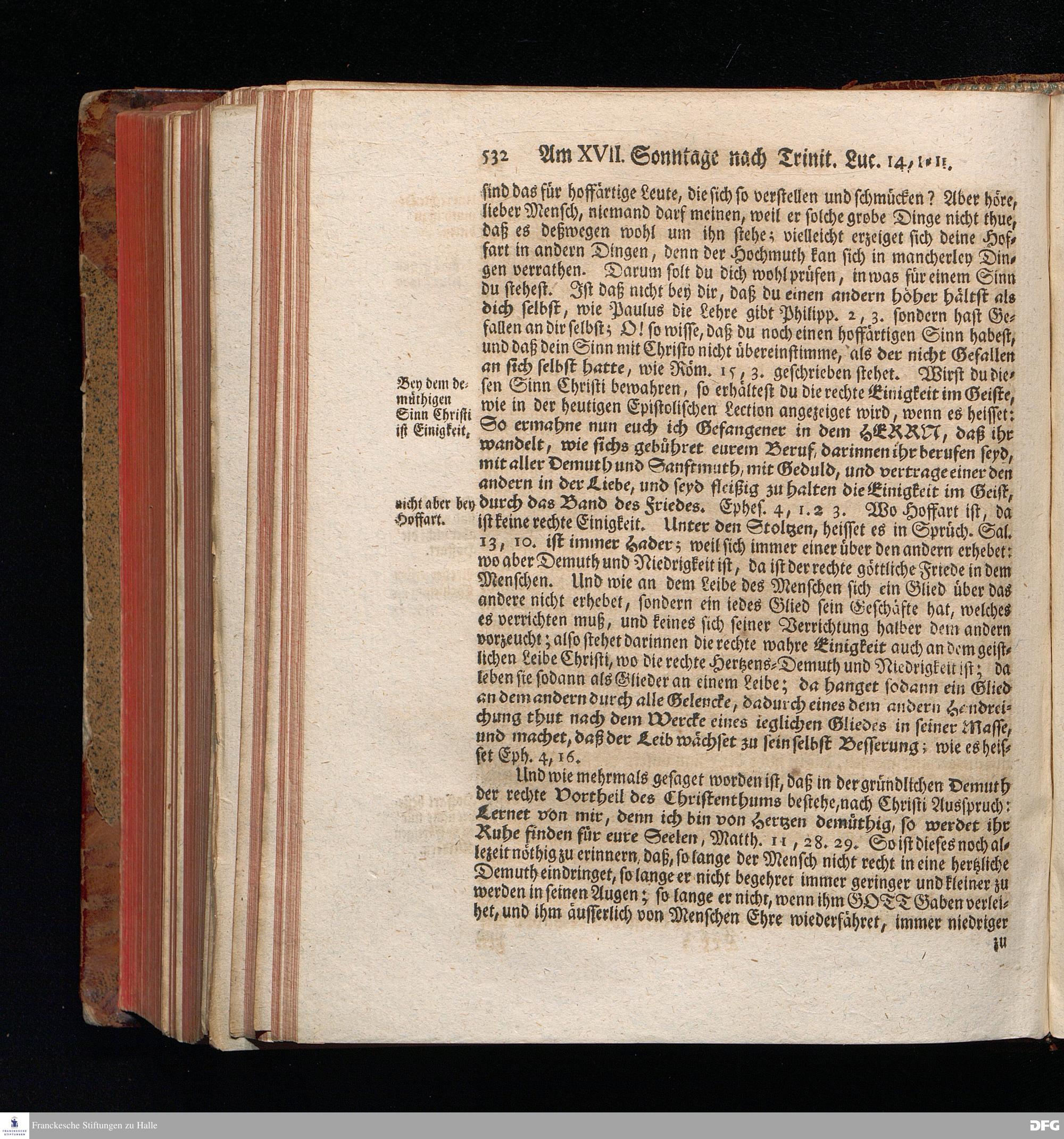 August Hermann Franckens, S.Theol.Prof.und Past. Sonn= Fest= und Apostel=Tags=Predigten, Darinnen Die zum wahren Christenthum gehörige nöthigste und vornehmste Materien abgehandelt sind; Nebst den darzu nützlichen Registern. Die achte EDITION. Mit Königl.Preuß.und Churfl.Brandenb.Privil. HALLE, gedruckt und verlegt im Wäysenhause / MDCCXLVI.
