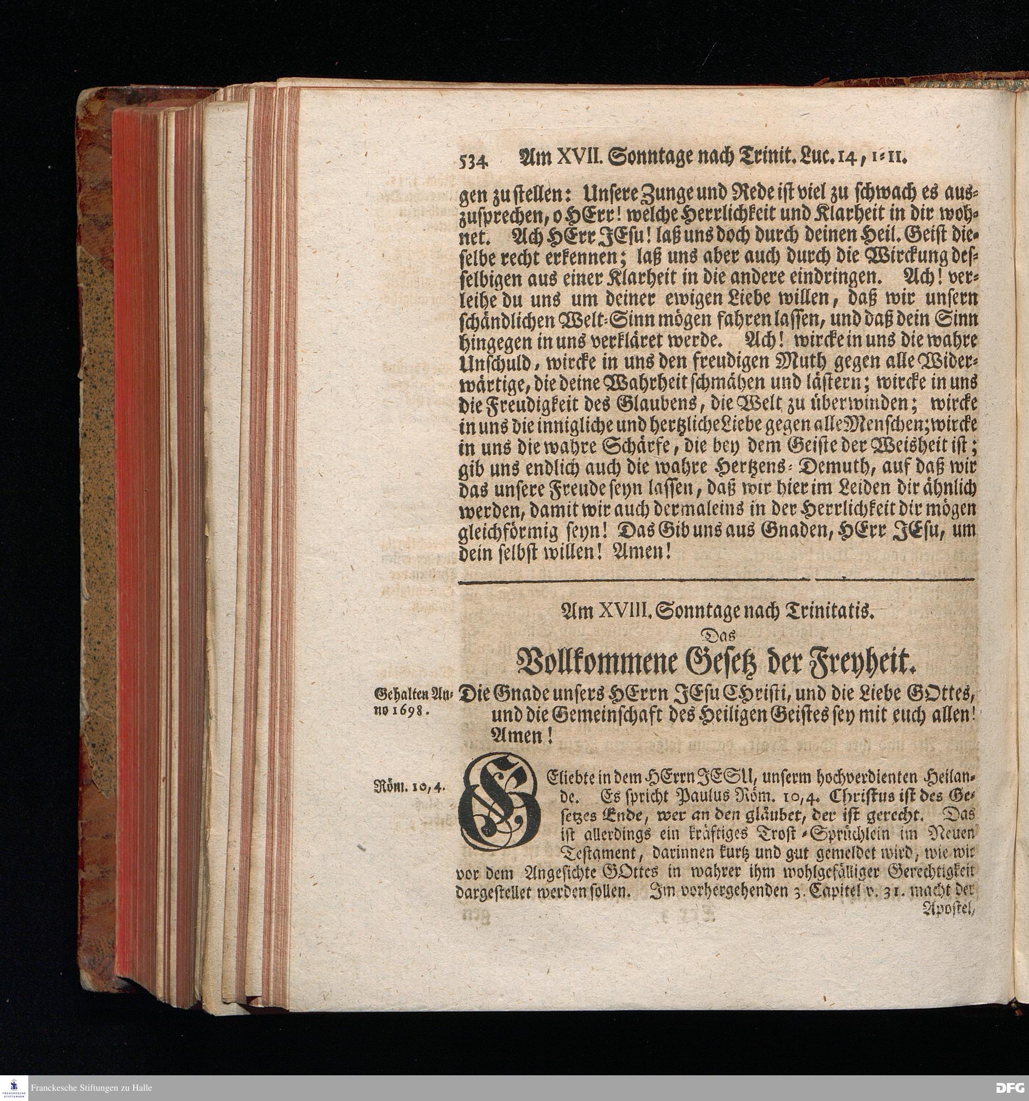 August Hermann Franckens, S.Theol.Prof.und Past. Sonn= Fest= und Apostel=Tags=Predigten, Darinnen Die zum wahren Christenthum gehörige nöthigste und vornehmste Materien abgehandelt sind; Nebst den darzu nützlichen Registern. Die achte EDITION. Mit Königl.Preuß.und Churfl.Brandenb.Privil. HALLE, gedruckt und verlegt im Wäysenhause / MDCCXLVI.