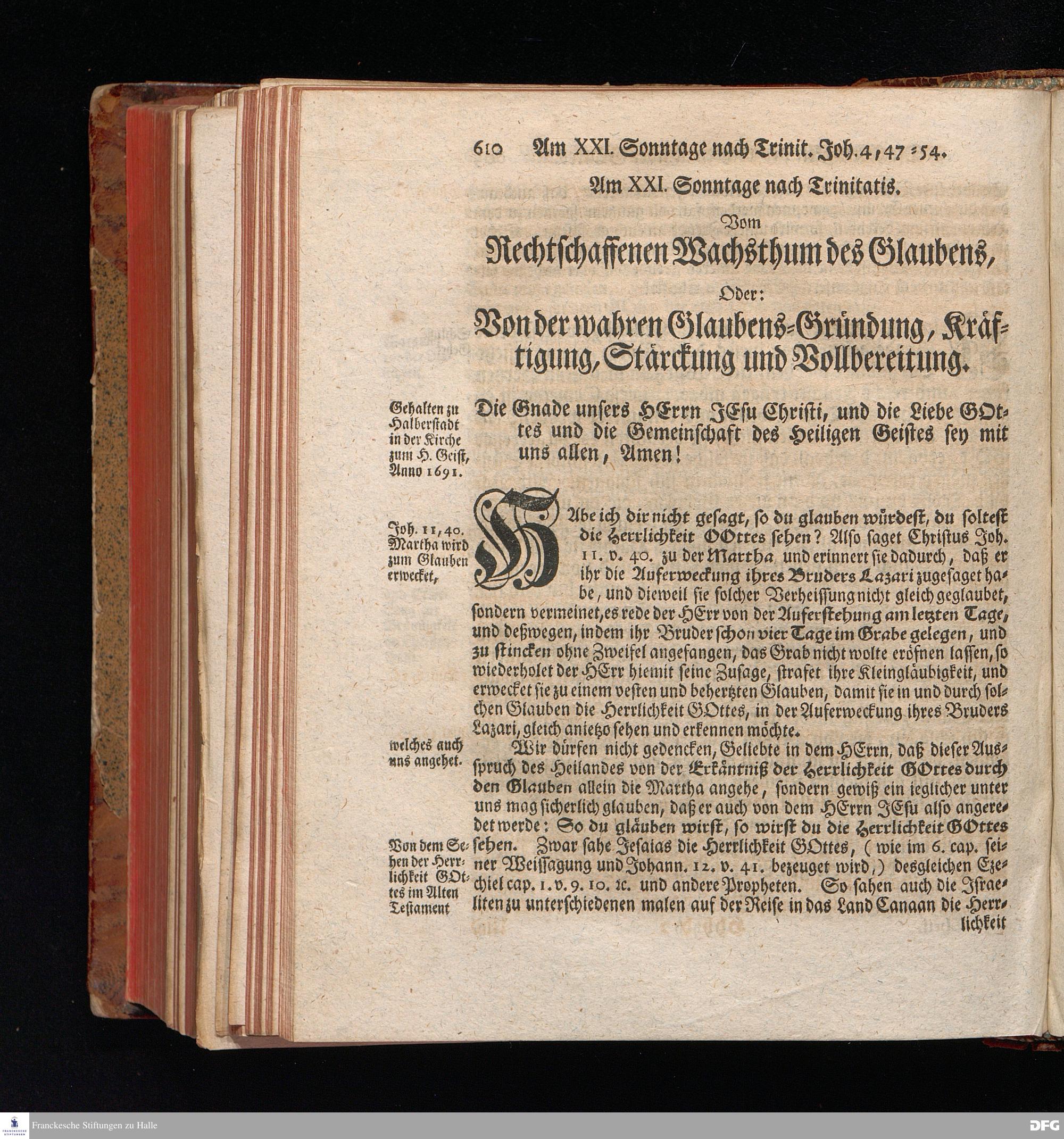 August Hermann Franckens, S.Theol.Prof.und Past. Sonn= Fest= und Apostel=Tags=Predigten, Darinnen Die zum wahren Christenthum gehörige nöthigste und vornehmste Materien abgehandelt sind; Nebst den darzu nützlichen Registern. Die achte EDITION. Mit Königl.Preuß.und Churfl.Brandenb.Privil. HALLE, gedruckt und verlegt im Wäysenhause / MDCCXLVI.