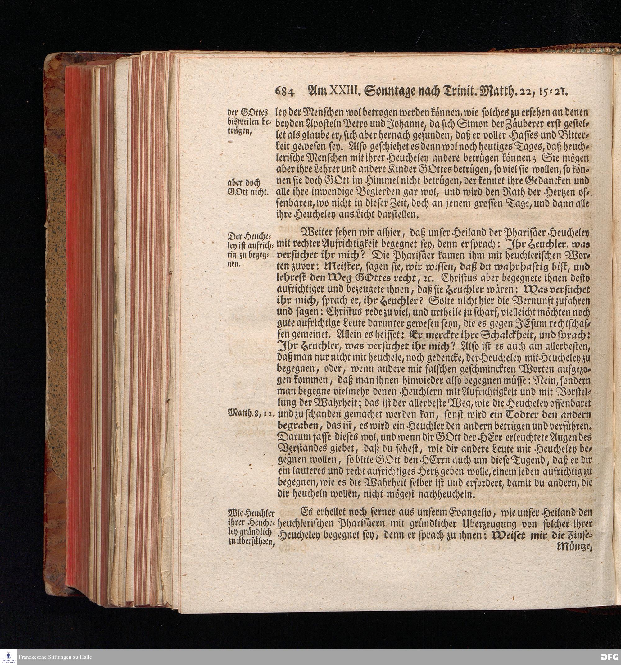 August Hermann Franckens, S.Theol.Prof.und Past. Sonn= Fest= und Apostel=Tags=Predigten, Darinnen Die zum wahren Christenthum gehörige nöthigste und vornehmste Materien abgehandelt sind; Nebst den darzu nützlichen Registern. Die achte EDITION. Mit Königl.Preuß.und Churfl.Brandenb.Privil. HALLE, gedruckt und verlegt im Wäysenhause / MDCCXLVI.