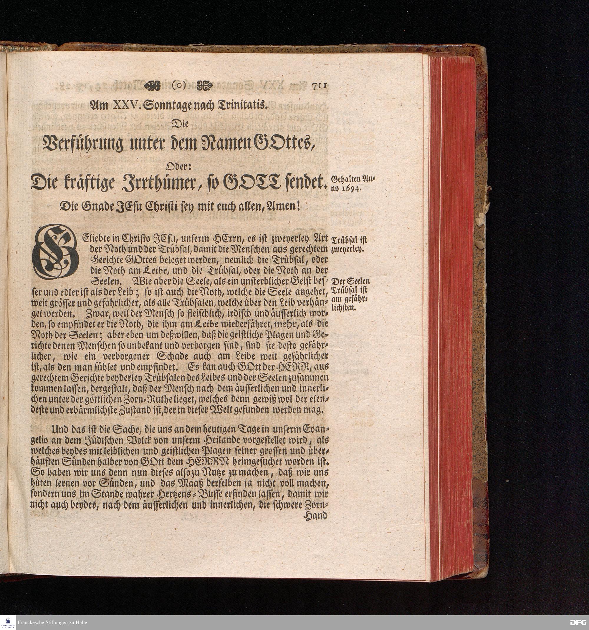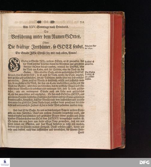 August Hermann Franckens, S.Theol.Prof.und Past. Sonn= Fest= und Apostel=Tags=Predigten, Darinnen Die zum wahren Christenthum gehörige nöthigste und vornehmste Materien abgehandelt sind; Nebst den darzu nützlichen Registern. Die achte EDITION. Mit Königl.Preuß.und Churfl.Brandenb.Privil. HALLE, gedruckt und verlegt im Wäysenhause / MDCCXLVI.