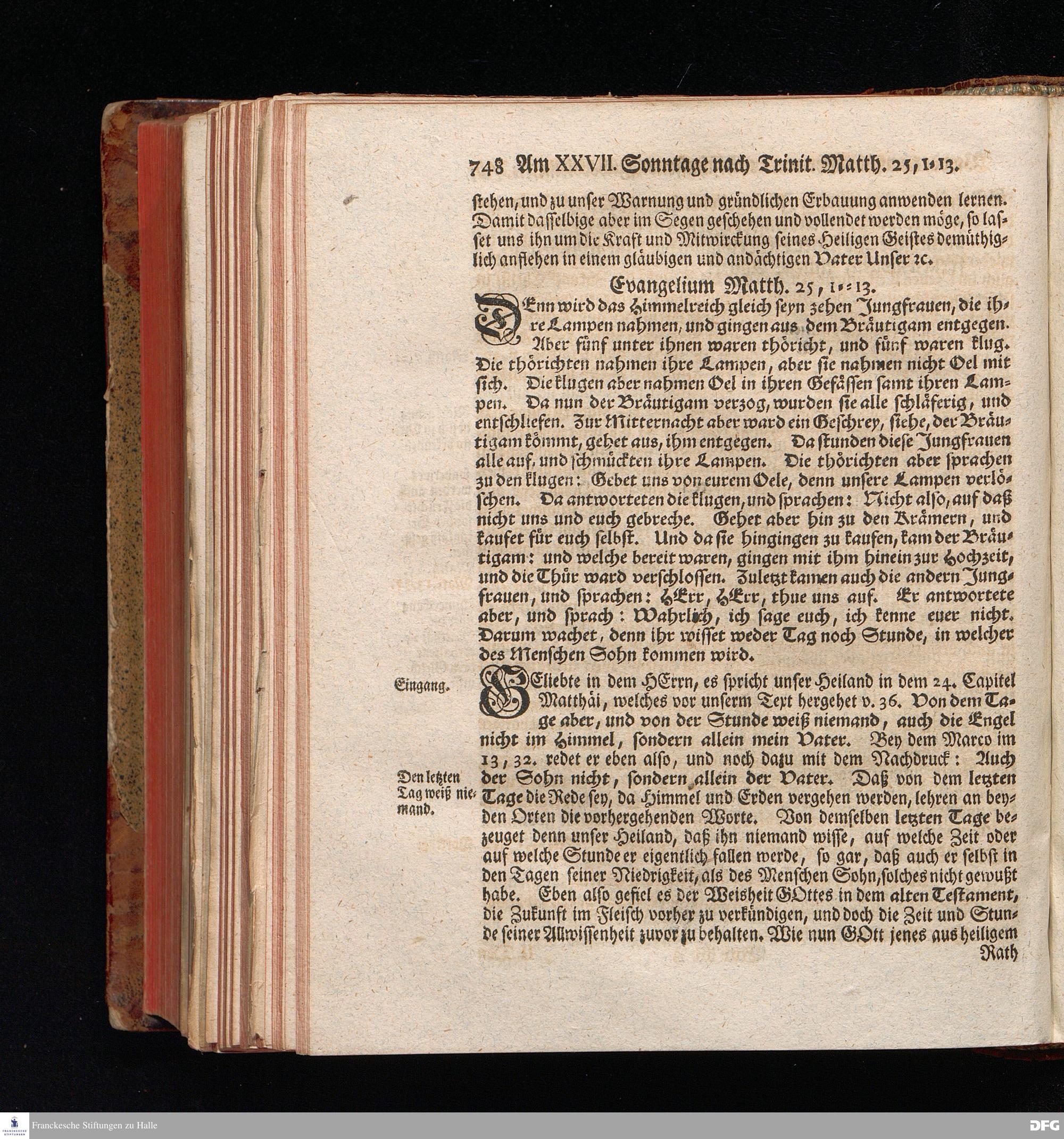 August Hermann Franckens, S.Theol.Prof.und Past. Sonn= Fest= und Apostel=Tags=Predigten, Darinnen Die zum wahren Christenthum gehörige nöthigste und vornehmste Materien abgehandelt sind; Nebst den darzu nützlichen Registern. Die achte EDITION. Mit Königl.Preuß.und Churfl.Brandenb.Privil. HALLE, gedruckt und verlegt im Wäysenhause / MDCCXLVI.