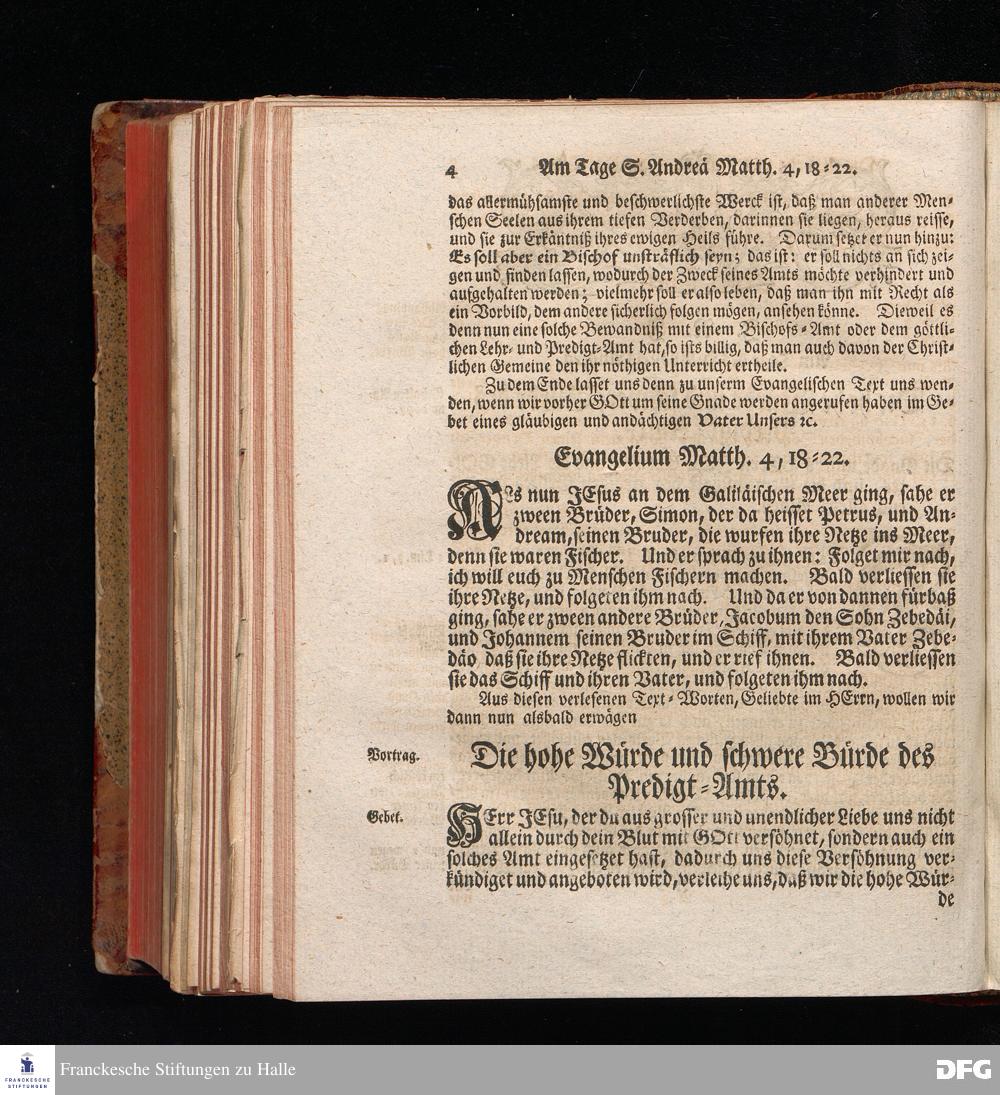 August Hermann Franckens, S.Theol.Prof.und Past. Sonn= Fest= und Apostel=Tags=Predigten, Darinnen Die zum wahren Christenthum gehörige nöthigste und vornehmste Materien abgehandelt sind; Nebst den darzu nützlichen Registern. Die achte EDITION. Mit Königl.Preuß.und Churfl.Brandenb.Privil. HALLE, gedruckt und verlegt im Wäysenhause / MDCCXLVI.