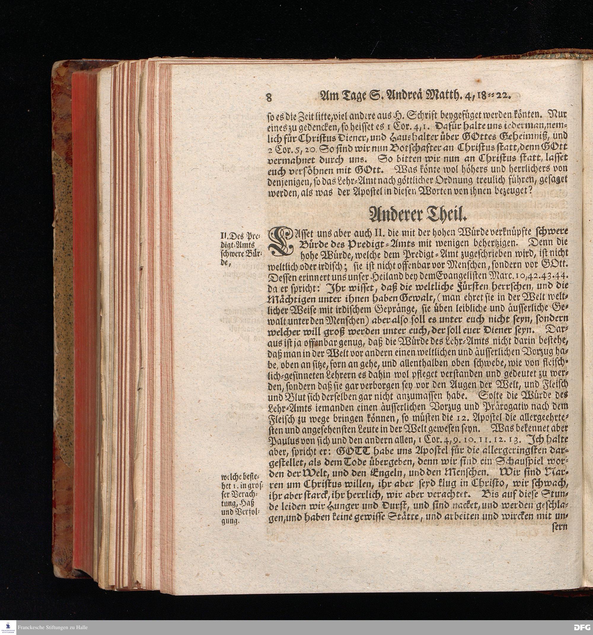 August Hermann Franckens, S.Theol.Prof.und Past. Sonn= Fest= und Apostel=Tags=Predigten, Darinnen Die zum wahren Christenthum gehörige nöthigste und vornehmste Materien abgehandelt sind; Nebst den darzu nützlichen Registern. Die achte EDITION. Mit Königl.Preuß.und Churfl.Brandenb.Privil. HALLE, gedruckt und verlegt im Wäysenhause / MDCCXLVI.