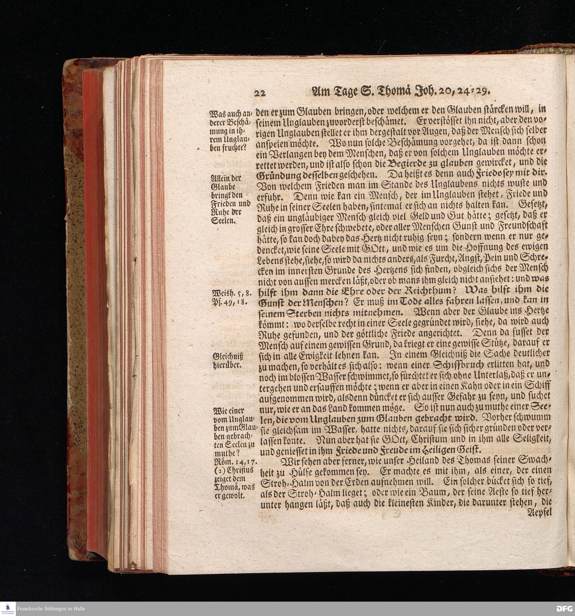 August Hermann Franckens, S.Theol.Prof.und Past. Sonn= Fest= und Apostel=Tags=Predigten, Darinnen Die zum wahren Christenthum gehörige nöthigste und vornehmste Materien abgehandelt sind; Nebst den darzu nützlichen Registern. Die achte EDITION. Mit Königl.Preuß.und Churfl.Brandenb.Privil. HALLE, gedruckt und verlegt im Wäysenhause / MDCCXLVI.
