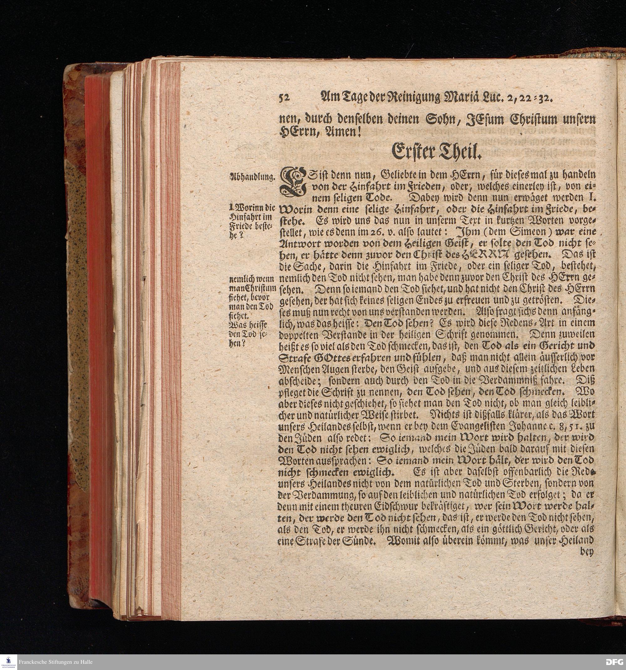 August Hermann Franckens, S.Theol.Prof.und Past. Sonn= Fest= und Apostel=Tags=Predigten, Darinnen Die zum wahren Christenthum gehörige nöthigste und vornehmste Materien abgehandelt sind; Nebst den darzu nützlichen Registern. Die achte EDITION. Mit Königl.Preuß.und Churfl.Brandenb.Privil. HALLE, gedruckt und verlegt im Wäysenhause / MDCCXLVI.