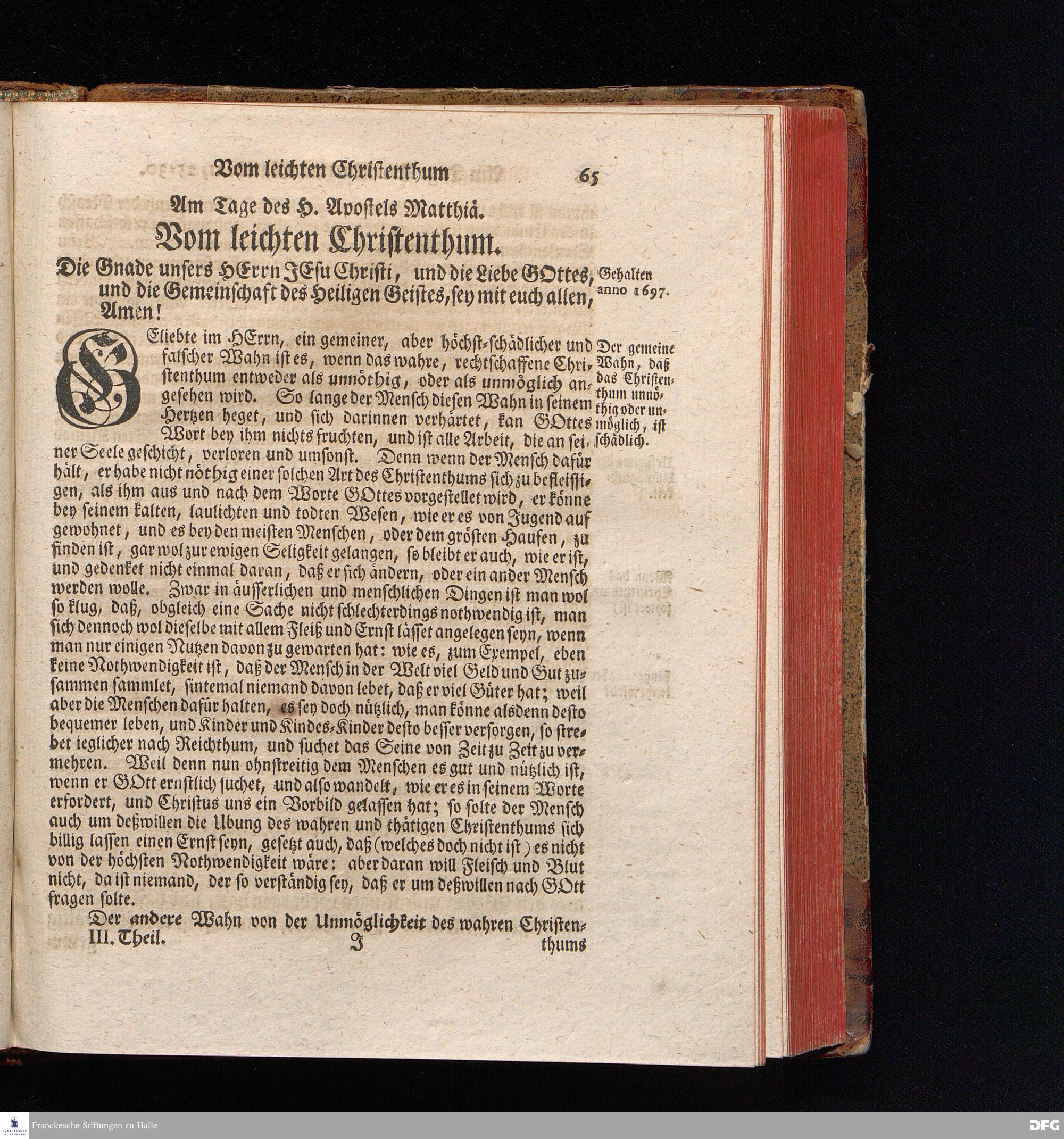 August Hermann Franckens, S.Theol.Prof.und Past. Sonn= Fest= und Apostel=Tags=Predigten, Darinnen Die zum wahren Christenthum gehörige nöthigste und vornehmste Materien abgehandelt sind; Nebst den darzu nützlichen Registern. Die achte EDITION. Mit Königl.Preuß.und Churfl.Brandenb.Privil. HALLE, gedruckt und verlegt im Wäysenhause / MDCCXLVI.