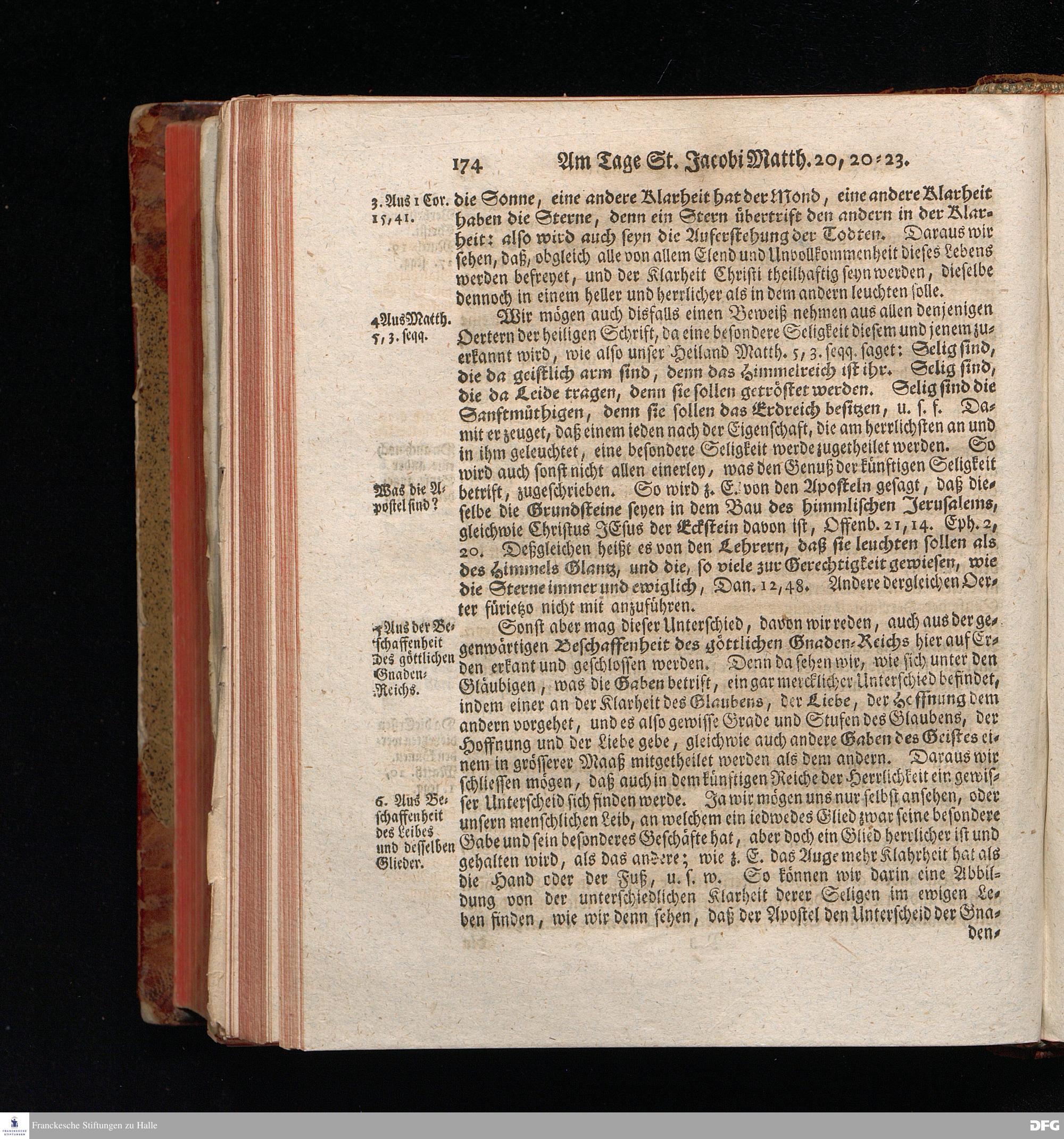 August Hermann Franckens, S.Theol.Prof.und Past. Sonn= Fest= und Apostel=Tags=Predigten, Darinnen Die zum wahren Christenthum gehörige nöthigste und vornehmste Materien abgehandelt sind; Nebst den darzu nützlichen Registern. Die achte EDITION. Mit Königl.Preuß.und Churfl.Brandenb.Privil. HALLE, gedruckt und verlegt im Wäysenhause / MDCCXLVI.