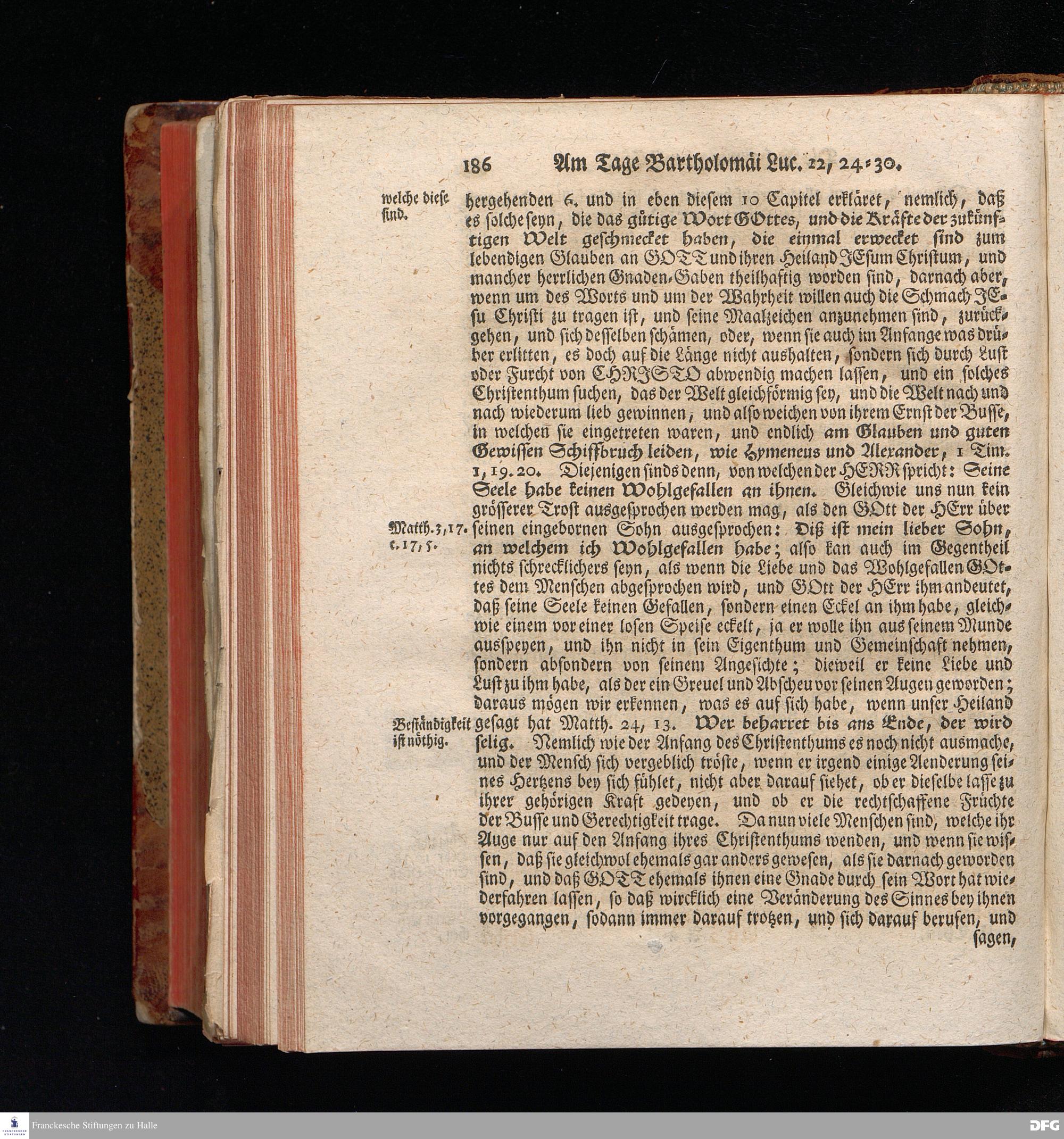 August Hermann Franckens, S.Theol.Prof.und Past. Sonn= Fest= und Apostel=Tags=Predigten, Darinnen Die zum wahren Christenthum gehörige nöthigste und vornehmste Materien abgehandelt sind; Nebst den darzu nützlichen Registern. Die achte EDITION. Mit Königl.Preuß.und Churfl.Brandenb.Privil. HALLE, gedruckt und verlegt im Wäysenhause / MDCCXLVI.