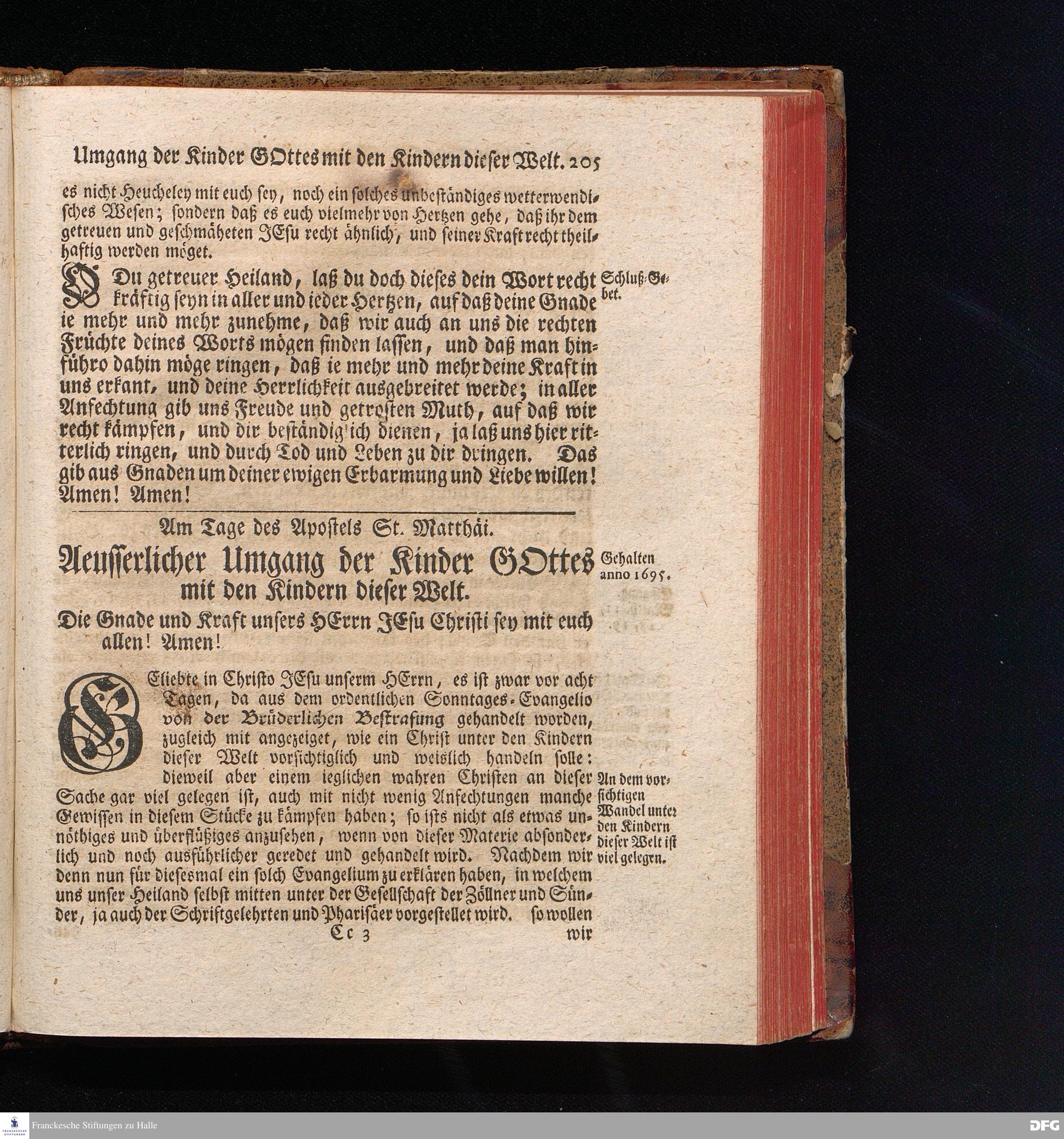 August Hermann Franckens, S.Theol.Prof.und Past. Sonn= Fest= und Apostel=Tags=Predigten, Darinnen Die zum wahren Christenthum gehörige nöthigste und vornehmste Materien abgehandelt sind; Nebst den darzu nützlichen Registern. Die achte EDITION. Mit Königl.Preuß.und Churfl.Brandenb.Privil. HALLE, gedruckt und verlegt im Wäysenhause / MDCCXLVI.