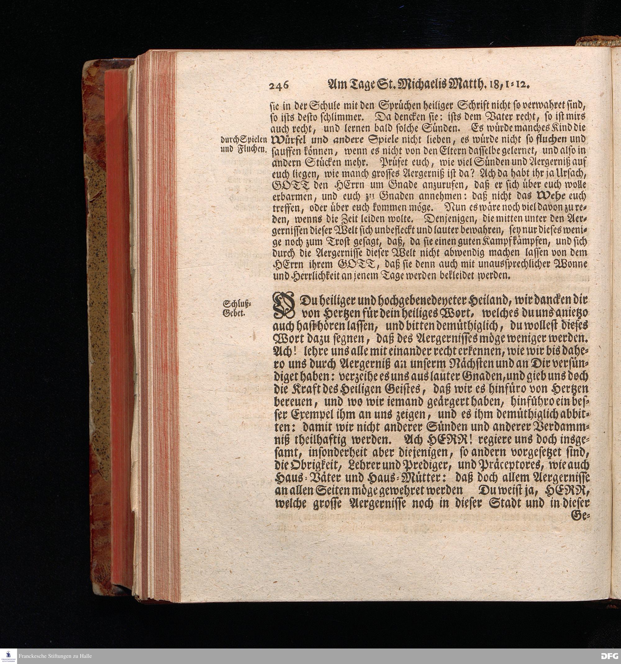 August Hermann Franckens, S.Theol.Prof.und Past. Sonn= Fest= und Apostel=Tags=Predigten, Darinnen Die zum wahren Christenthum gehörige nöthigste und vornehmste Materien abgehandelt sind; Nebst den darzu nützlichen Registern. Die achte EDITION. Mit Königl.Preuß.und Churfl.Brandenb.Privil. HALLE, gedruckt und verlegt im Wäysenhause / MDCCXLVI.