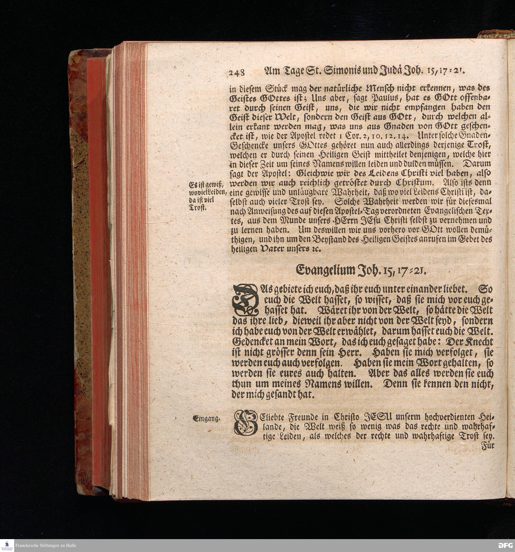 August Hermann Franckens, S.Theol.Prof.und Past. Sonn= Fest= und Apostel=Tags=Predigten, Darinnen Die zum wahren Christenthum gehörige nöthigste und vornehmste Materien abgehandelt sind; Nebst den darzu nützlichen Registern. Die achte EDITION. Mit Königl.Preuß.und Churfl.Brandenb.Privil. HALLE, gedruckt und verlegt im Wäysenhause / MDCCXLVI.