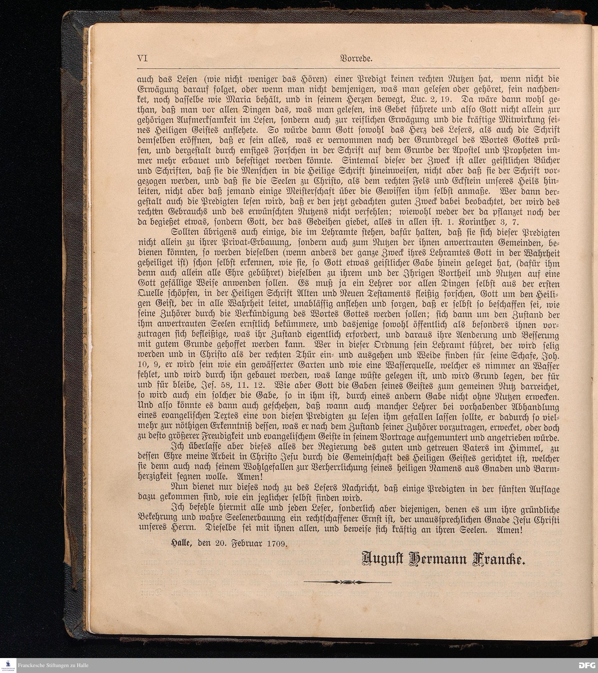 August Hermann Francke's weil.d.Theol.Prof.u.Pastor in Halle a.S., Sonn-, Fest- u. Aposteltags-Predigten, darinnen die zum wahren Christenthum gehörigen und vornehmsten Lehren behandelt sind. Aufs neue herausgegeben, verlegt und nur allein zu beziehen vom Ostpr.evang.Gebets=Verein in Berlin, Anklamstraße 31. Tilsit 1902. Gedruckt bei M. Jagomast.