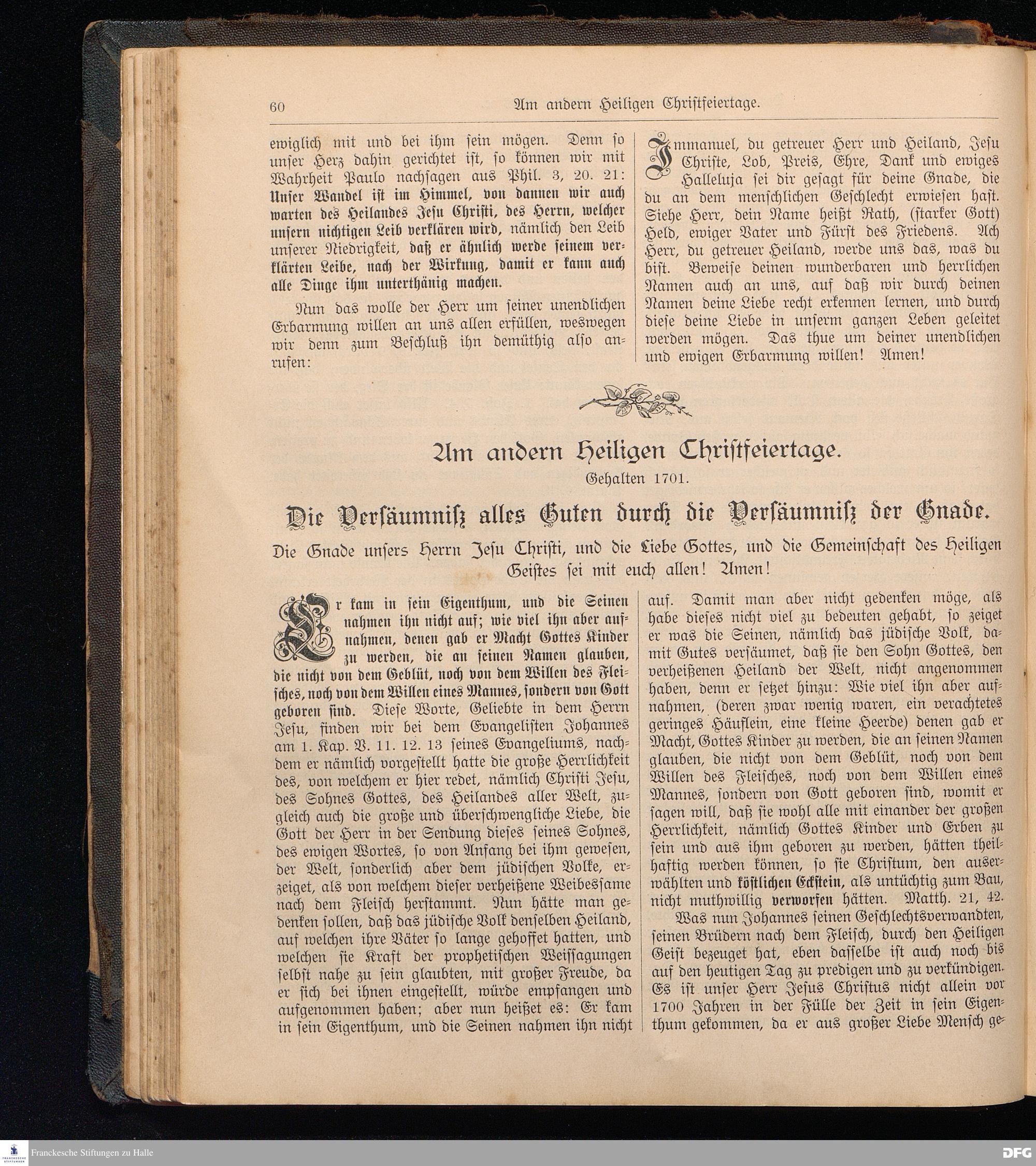 August Hermann Francke's weil.d.Theol.Prof.u.Pastor in Halle a.S., Sonn-, Fest- u. Aposteltags-Predigten, darinnen die zum wahren Christenthum gehörigen und vornehmsten Lehren behandelt sind. Aufs neue herausgegeben, verlegt und nur allein zu beziehen vom Ostpr.evang.Gebets=Verein in Berlin, Anklamstraße 31. Tilsit 1902. Gedruckt bei M. Jagomast.