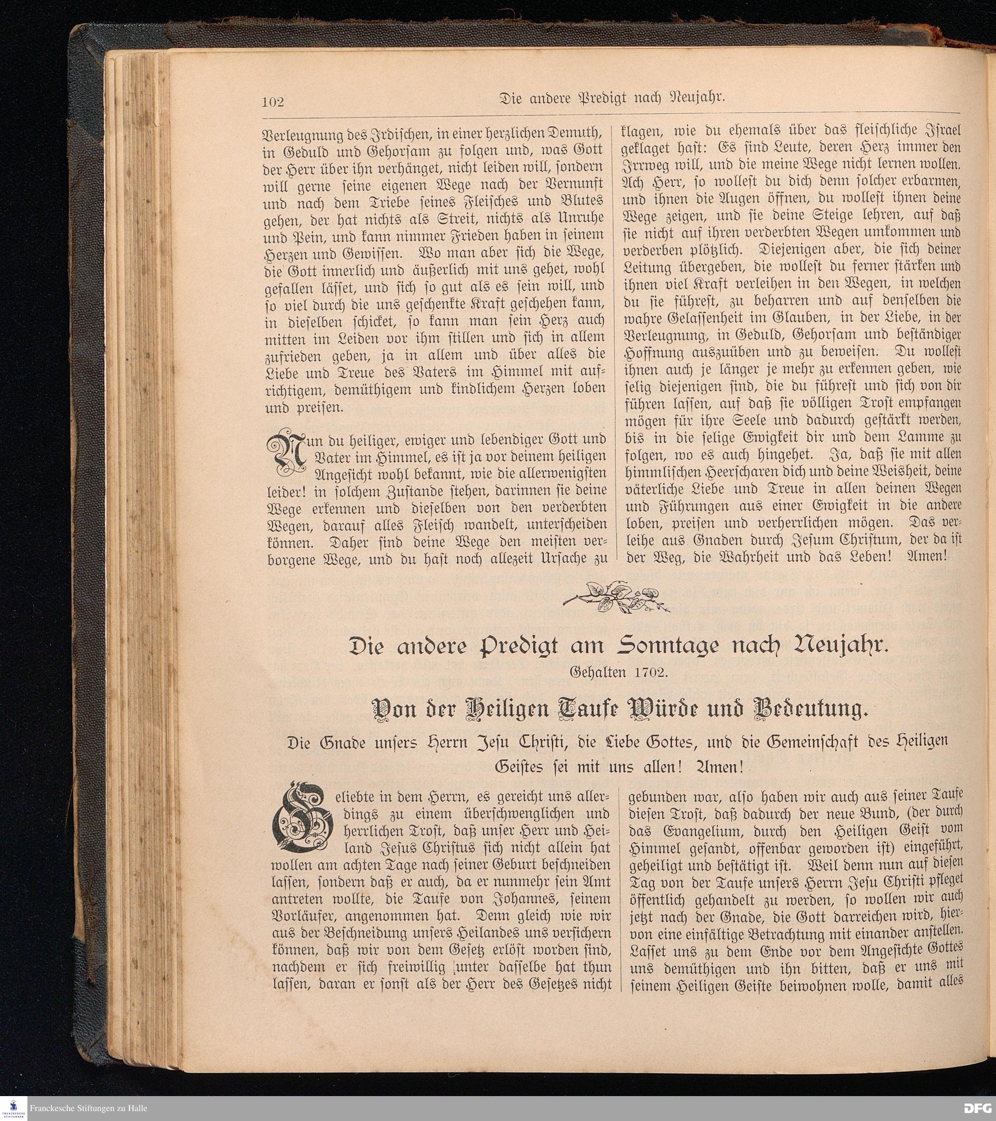 August Hermann Francke's weil.d.Theol.Prof.u.Pastor in Halle a.S., Sonn-, Fest- u. Aposteltags-Predigten, darinnen die zum wahren Christenthum gehörigen und vornehmsten Lehren behandelt sind. Aufs neue herausgegeben, verlegt und nur allein zu beziehen vom Ostpr.evang.Gebets=Verein in Berlin, Anklamstraße 31. Tilsit 1902. Gedruckt bei M. Jagomast.