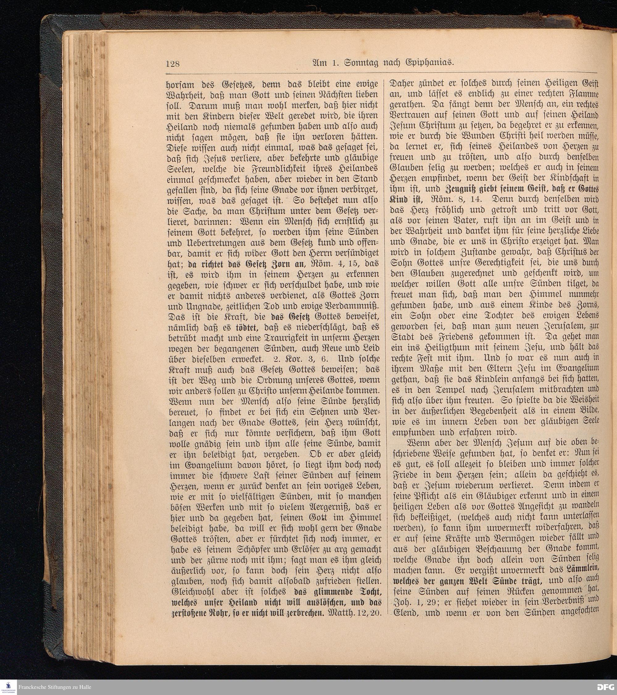 August Hermann Francke's weil.d.Theol.Prof.u.Pastor in Halle a.S., Sonn-, Fest- u. Aposteltags-Predigten, darinnen die zum wahren Christenthum gehörigen und vornehmsten Lehren behandelt sind. Aufs neue herausgegeben, verlegt und nur allein zu beziehen vom Ostpr.evang.Gebets=Verein in Berlin, Anklamstraße 31. Tilsit 1902. Gedruckt bei M. Jagomast.