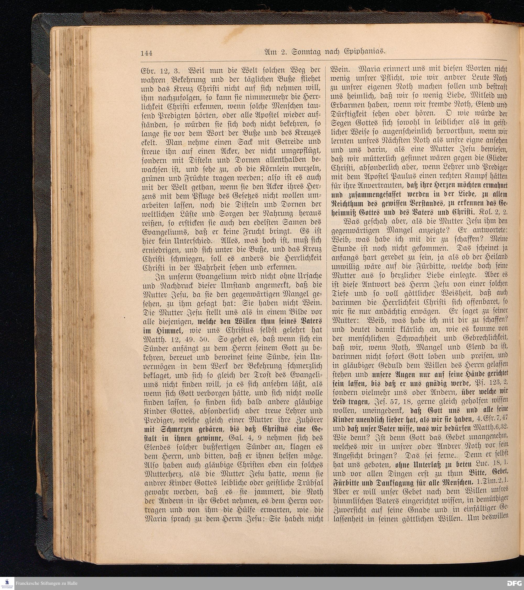 August Hermann Francke's weil.d.Theol.Prof.u.Pastor in Halle a.S., Sonn-, Fest- u. Aposteltags-Predigten, darinnen die zum wahren Christenthum gehörigen und vornehmsten Lehren behandelt sind. Aufs neue herausgegeben, verlegt und nur allein zu beziehen vom Ostpr.evang.Gebets=Verein in Berlin, Anklamstraße 31. Tilsit 1902. Gedruckt bei M. Jagomast.