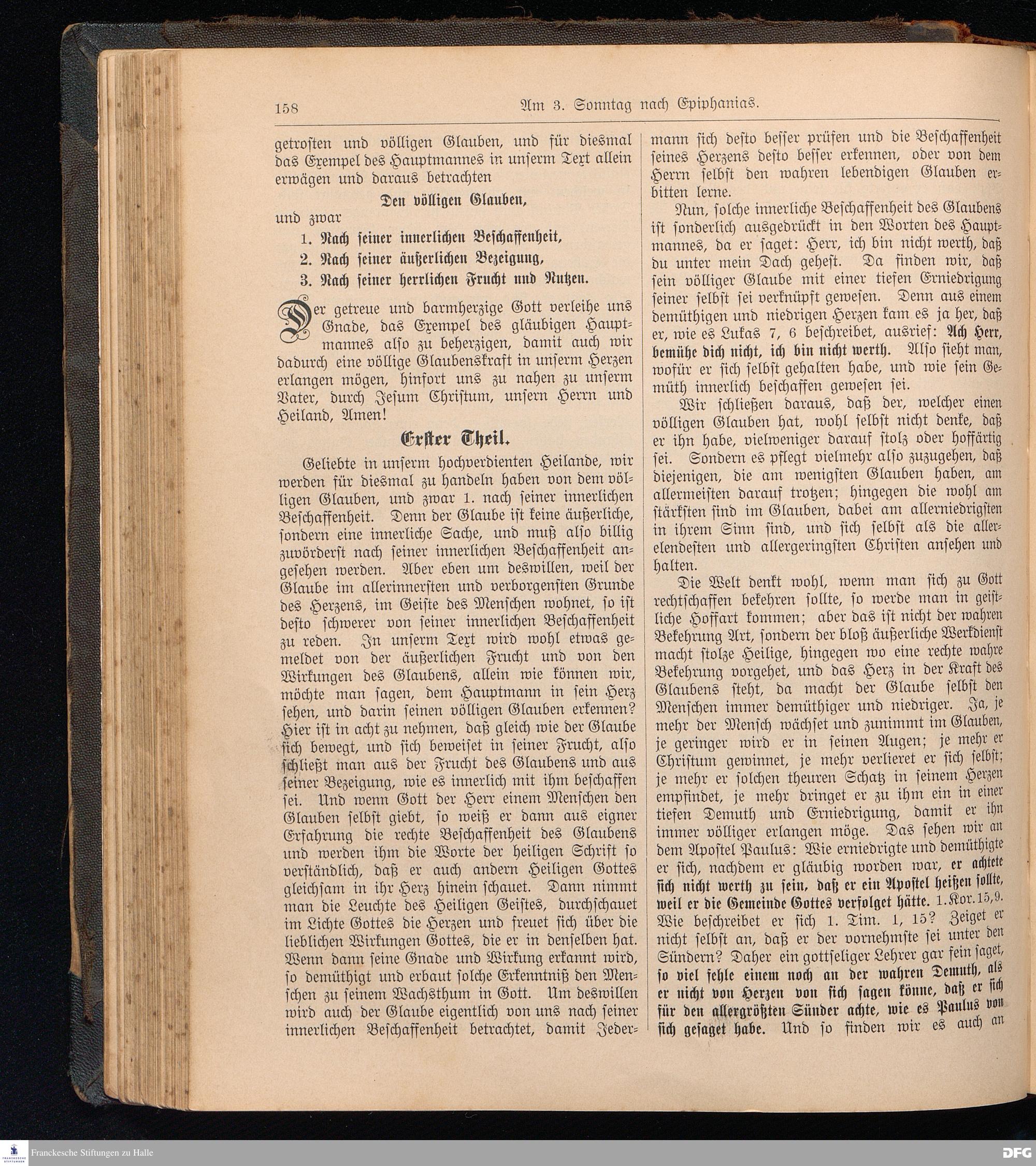 August Hermann Francke's weil.d.Theol.Prof.u.Pastor in Halle a.S., Sonn-, Fest- u. Aposteltags-Predigten, darinnen die zum wahren Christenthum gehörigen und vornehmsten Lehren behandelt sind. Aufs neue herausgegeben, verlegt und nur allein zu beziehen vom Ostpr.evang.Gebets=Verein in Berlin, Anklamstraße 31. Tilsit 1902. Gedruckt bei M. Jagomast.