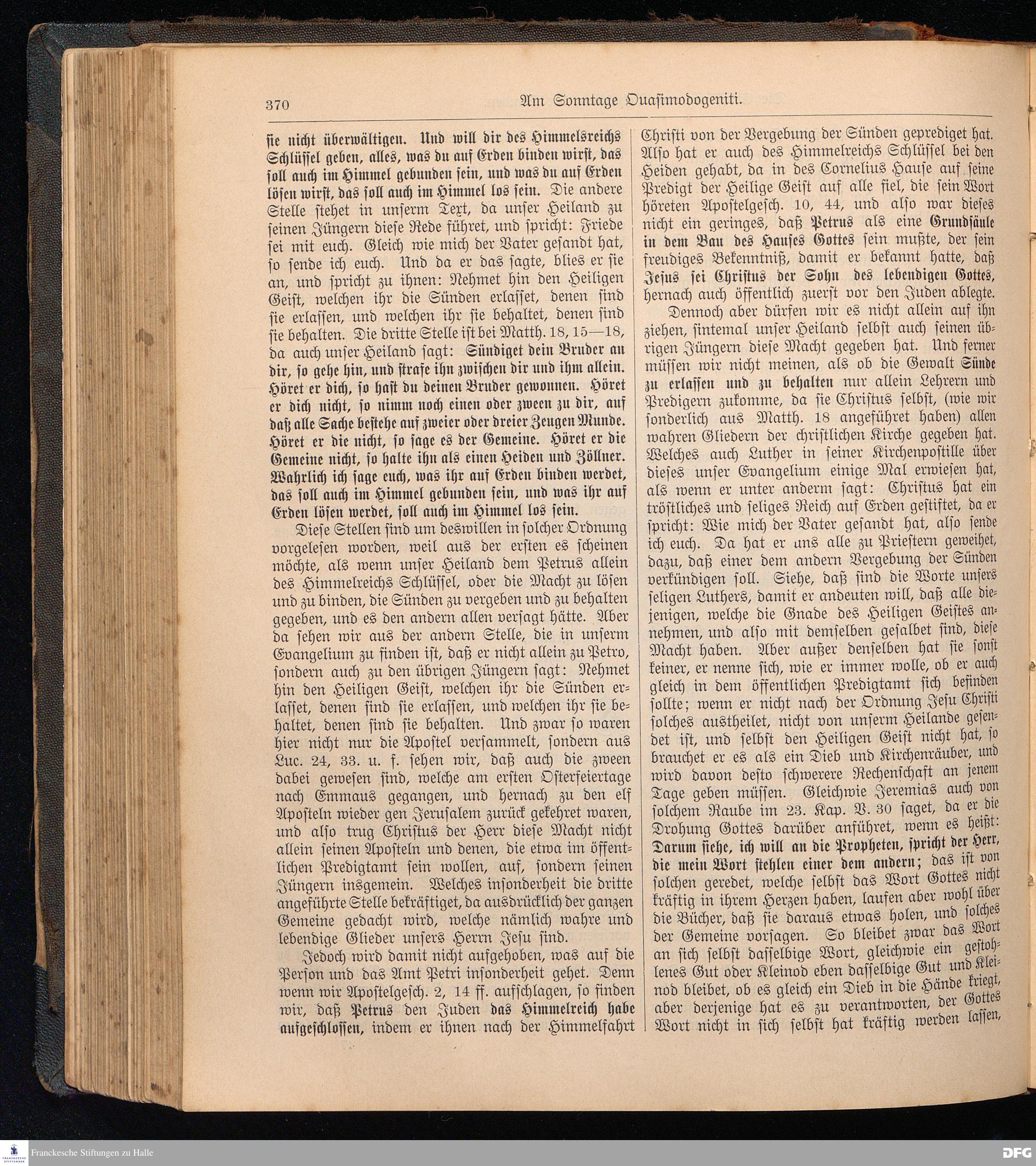 August Hermann Francke's weil.d.Theol.Prof.u.Pastor in Halle a.S., Sonn-, Fest- u. Aposteltags-Predigten, darinnen die zum wahren Christenthum gehörigen und vornehmsten Lehren behandelt sind. Aufs neue herausgegeben, verlegt und nur allein zu beziehen vom Ostpr.evang.Gebets=Verein in Berlin, Anklamstraße 31. Tilsit 1902. Gedruckt bei M. Jagomast.