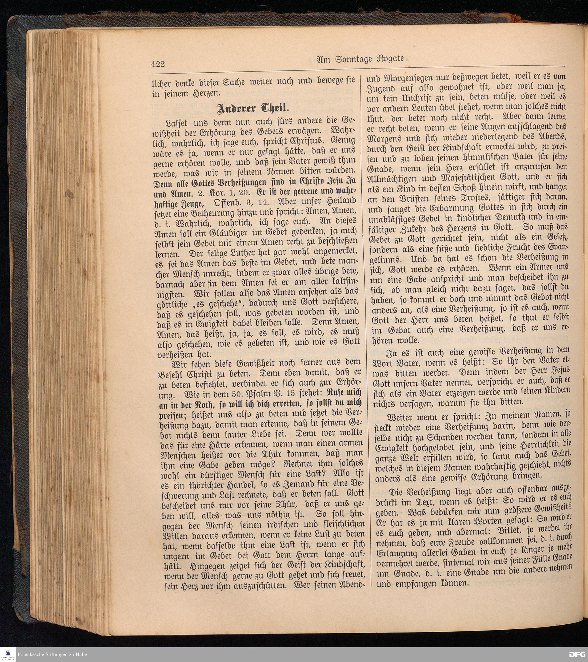 August Hermann Francke's weil.d.Theol.Prof.u.Pastor in Halle a.S., Sonn-, Fest- u. Aposteltags-Predigten, darinnen die zum wahren Christenthum gehörigen und vornehmsten Lehren behandelt sind. Aufs neue herausgegeben, verlegt und nur allein zu beziehen vom Ostpr.evang.Gebets=Verein in Berlin, Anklamstraße 31. Tilsit 1902. Gedruckt bei M. Jagomast.