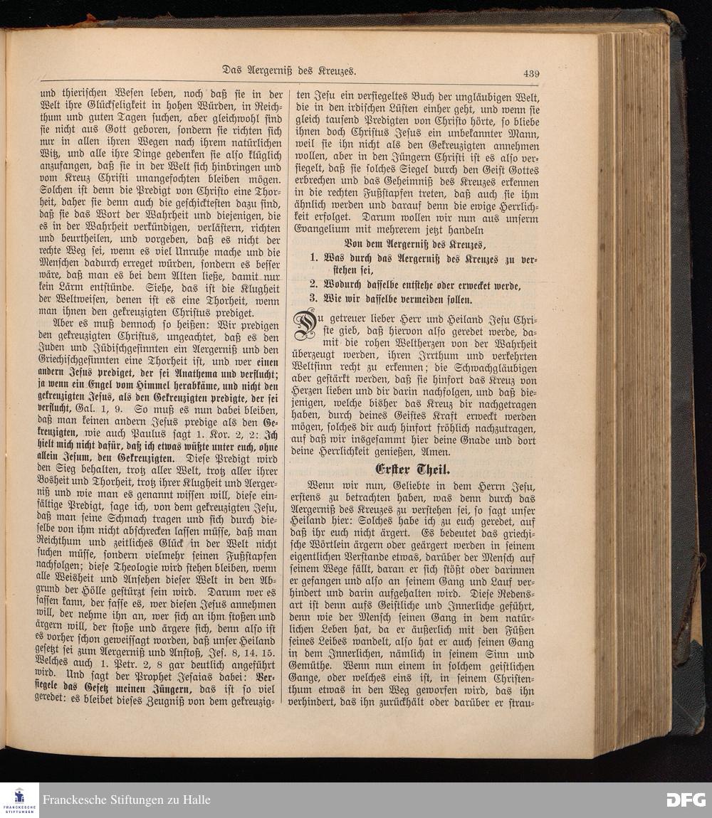 August Hermann Francke's weil.d.Theol.Prof.u.Pastor in Halle a.S., Sonn-, Fest- u. Aposteltags-Predigten, darinnen die zum wahren Christenthum gehörigen und vornehmsten Lehren behandelt sind. Aufs neue herausgegeben, verlegt und nur allein zu beziehen vom Ostpr.evang.Gebets=Verein in Berlin, Anklamstraße 31. Tilsit 1902. Gedruckt bei M. Jagomast.